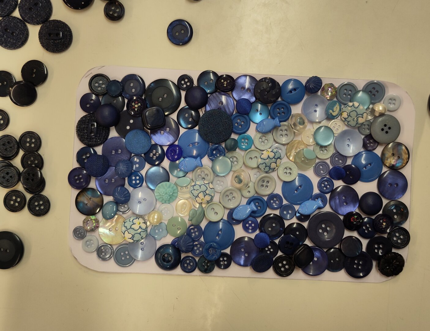 I started this with the idea to use up donated buttons that were starting to take over, the gradient didn't quite come out as good as I'd hoped, but the image doesn't fully do it justice.