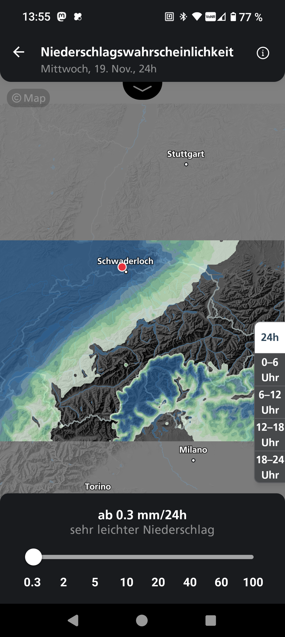 .. die Meteo Swiss App .. reicht mit ihrer Voraussage knapp bis auf den #hotzenwald
