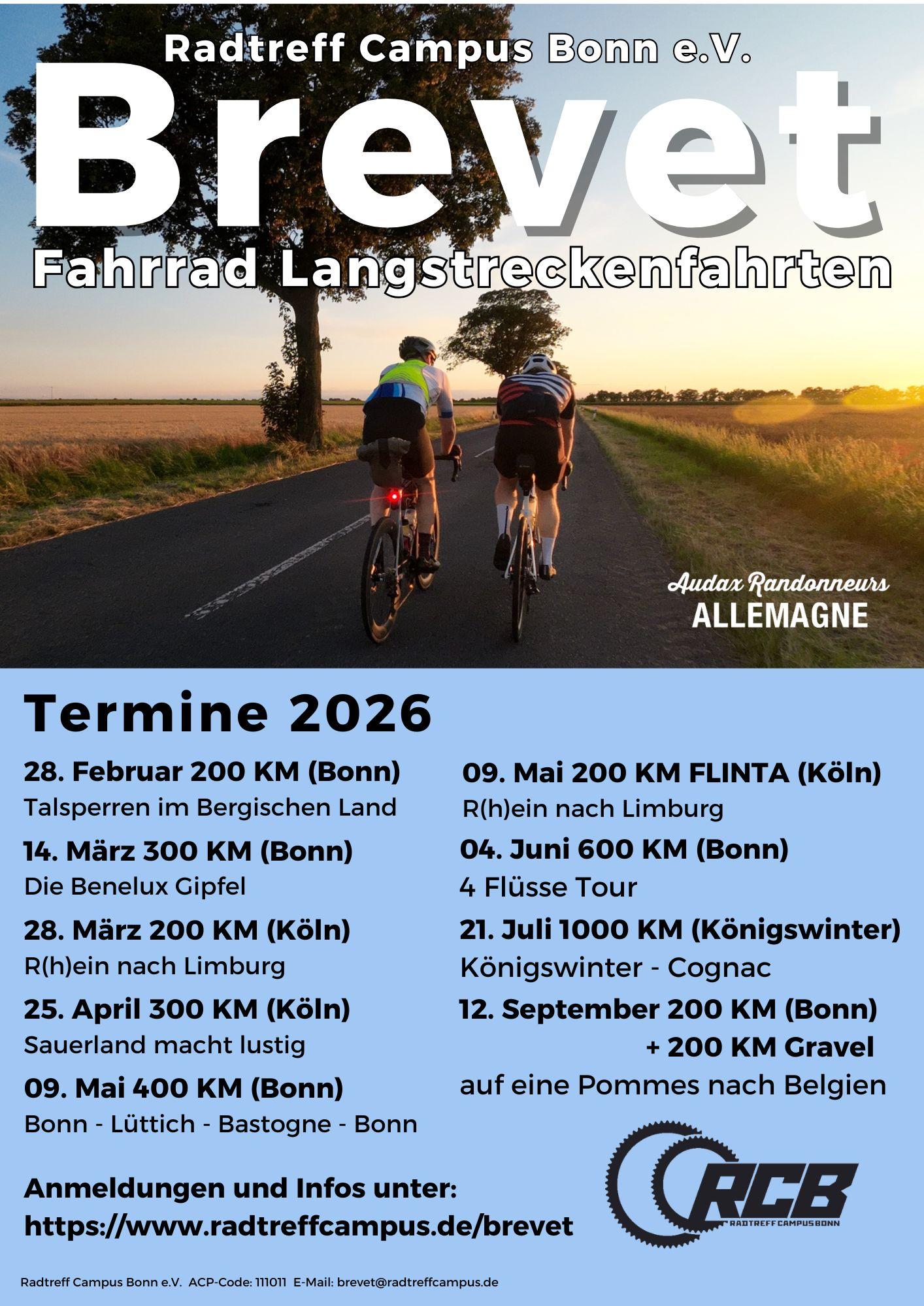 Ab heute könnt ihr euch für die #Brevet im #Rheinland anmelden ( #bonn/ #Koeln ) Zuerst die 'Blockanmeldung', damit die Vielfahrenden auch überall einen Startplatz bekommen und ab dem 18.01.26 dann auch für die einzelnen Brevet. Anmeldung hier: