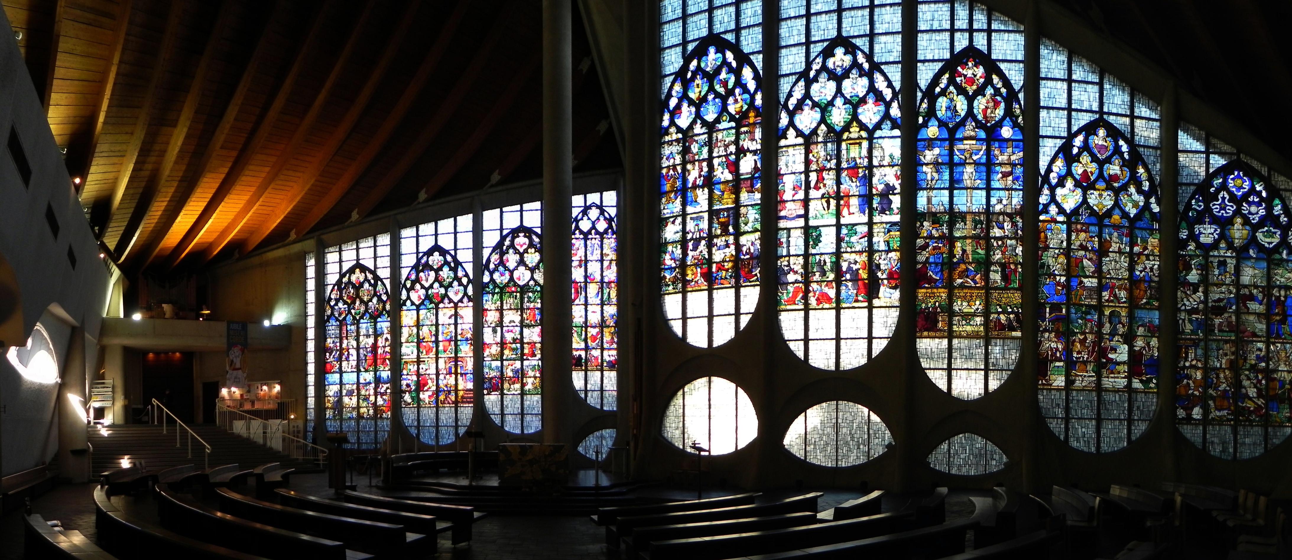 🇬🇧 Ste-Jeanne-d'Arc Church of Rouen (76-FR), a church with modern architecture but classic stained glass windows.