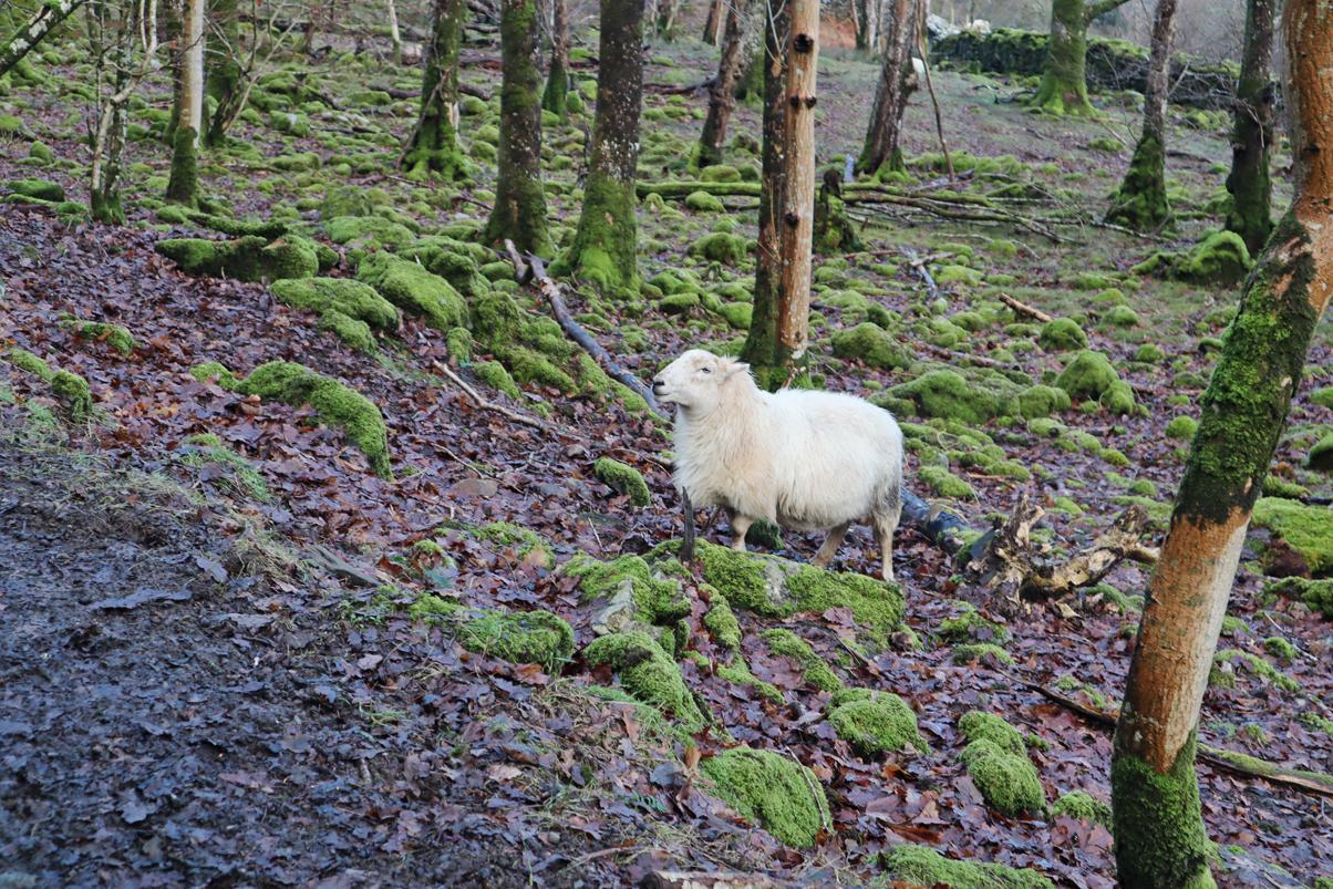 Roedd ychydig o haul, hyd yn oed. Ac ar y ffordd i lawr i'r maes parcio, roedd defaid yn y coed. A mwsogl. Llawer o fwsogl.