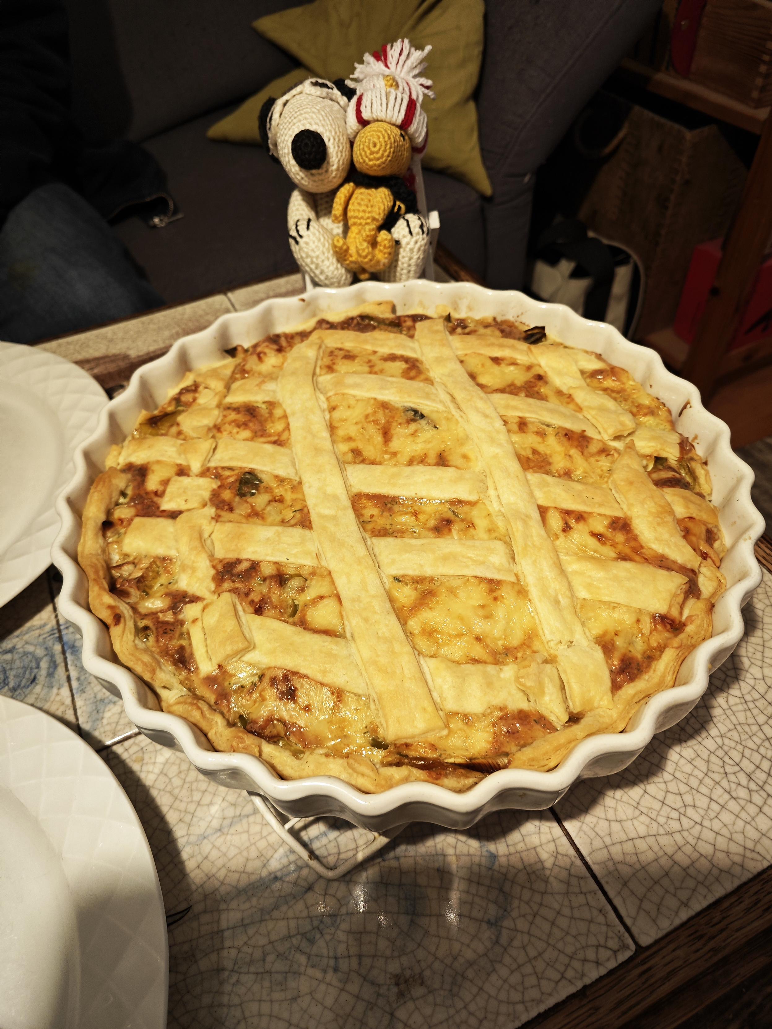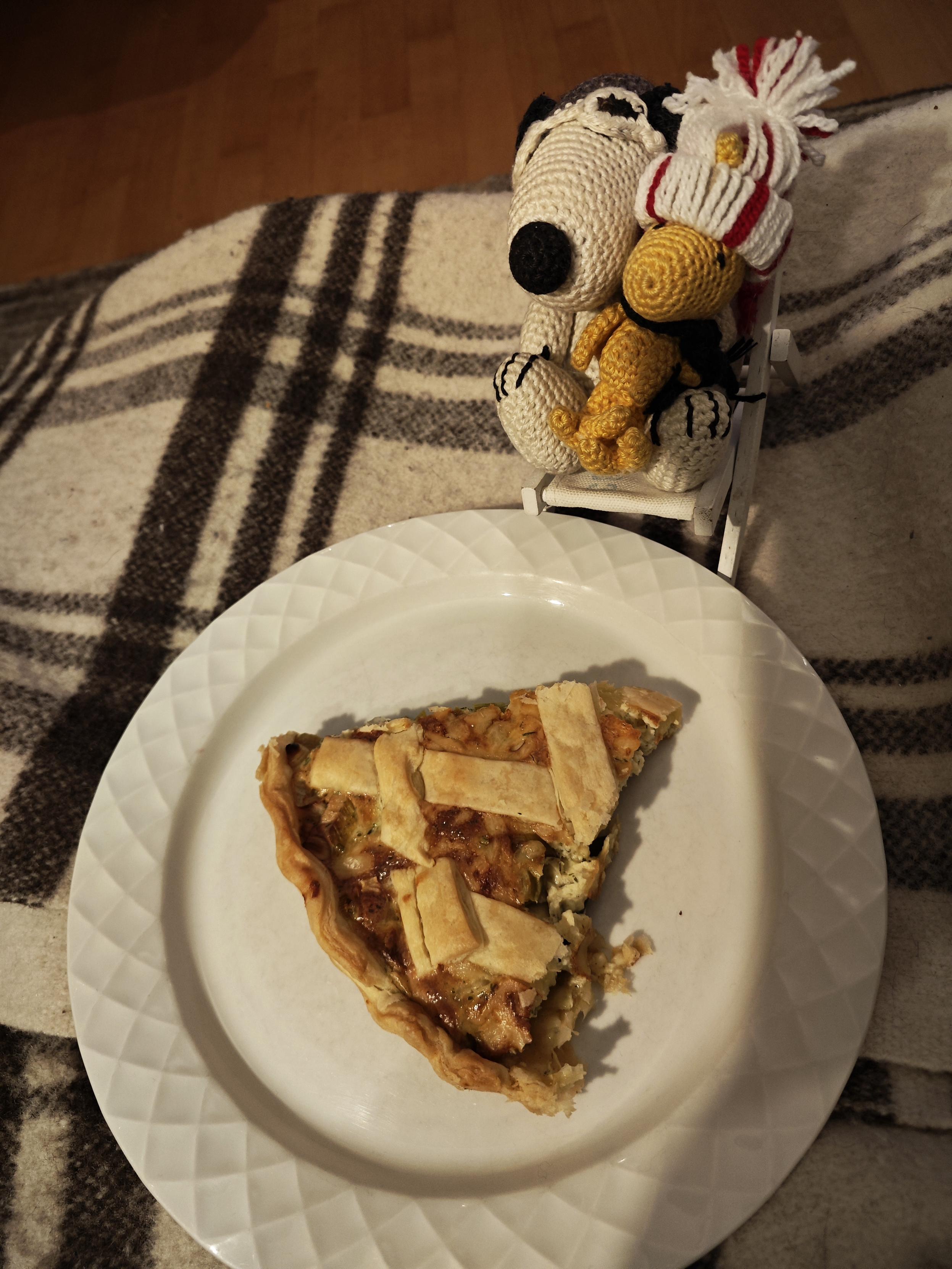 Das Küchenteam Snoopy und Woodstock hat sich ins Zeug gelegt und Lauchtorte mit Riesling gebacken.