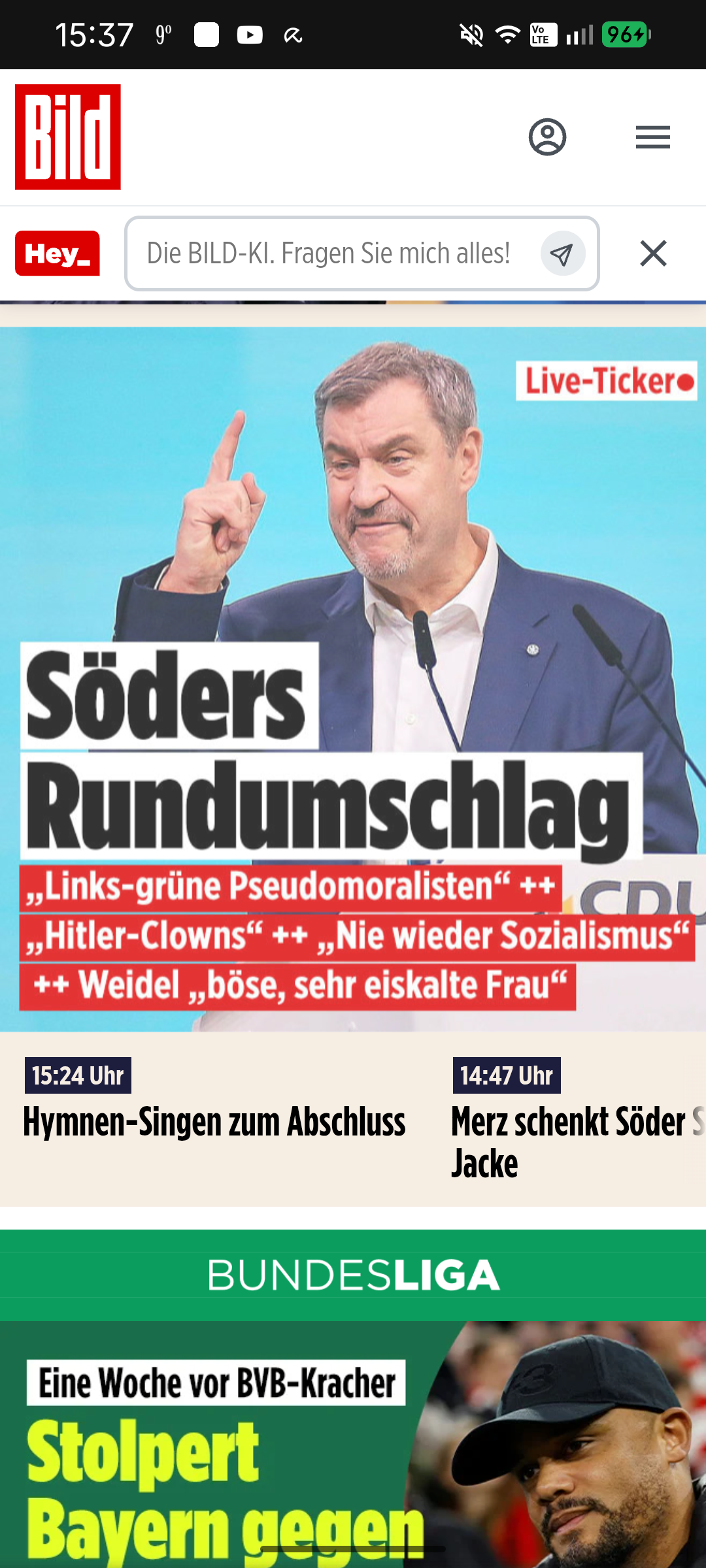 Der Springer-Verlag aka Bild zeigt mal wieder deren häßliche Fratze mit ihrer CDU/CSU Propaganda.. und vermutlich möchten Sie möchten sich nun auch bei der scheiß AfD annähern, es geht ja auch um viele Abos..😀