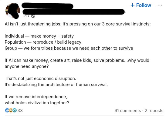 People on #LinkedIn genuinely terrify me. #AI #AIpsychosis