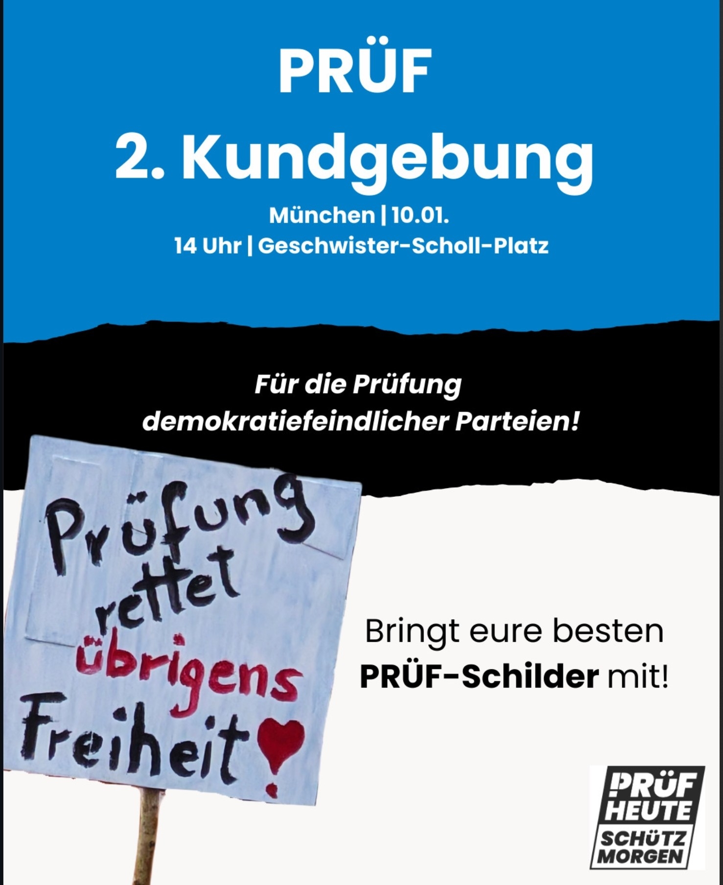 Dann kommt am Samstag (10.01.) um 14 Uhr auf die #PRÜF am Geschwister-Scholl-Platz in #München.