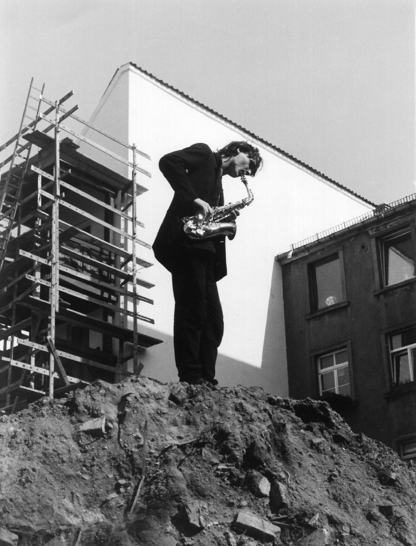 'Instrumente' Bei dem Thema habe ich nur meinen alten Klassiker - ein Saxphonist im Sanierungsgebiet in F-Bockenheim in den #80er #FotoVorschlag #Fotografie #schwarzweiss #myfoto #mywork #analog