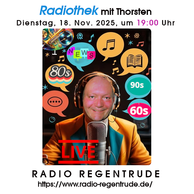 🇩🇪 Plakat zur heutigen Radiosendung mit LIVE-Moderation “Radiothek mit Thorsten“. Bild (ohne Text): Pixabay, kein Bildquellennachweis erforderlich.