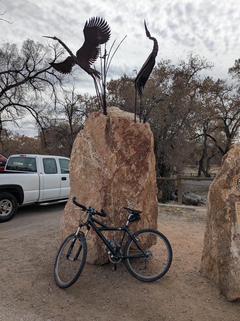 There's a nice crane #sculpture at the Central Ave entrance to the Rio Grande bosque trail.