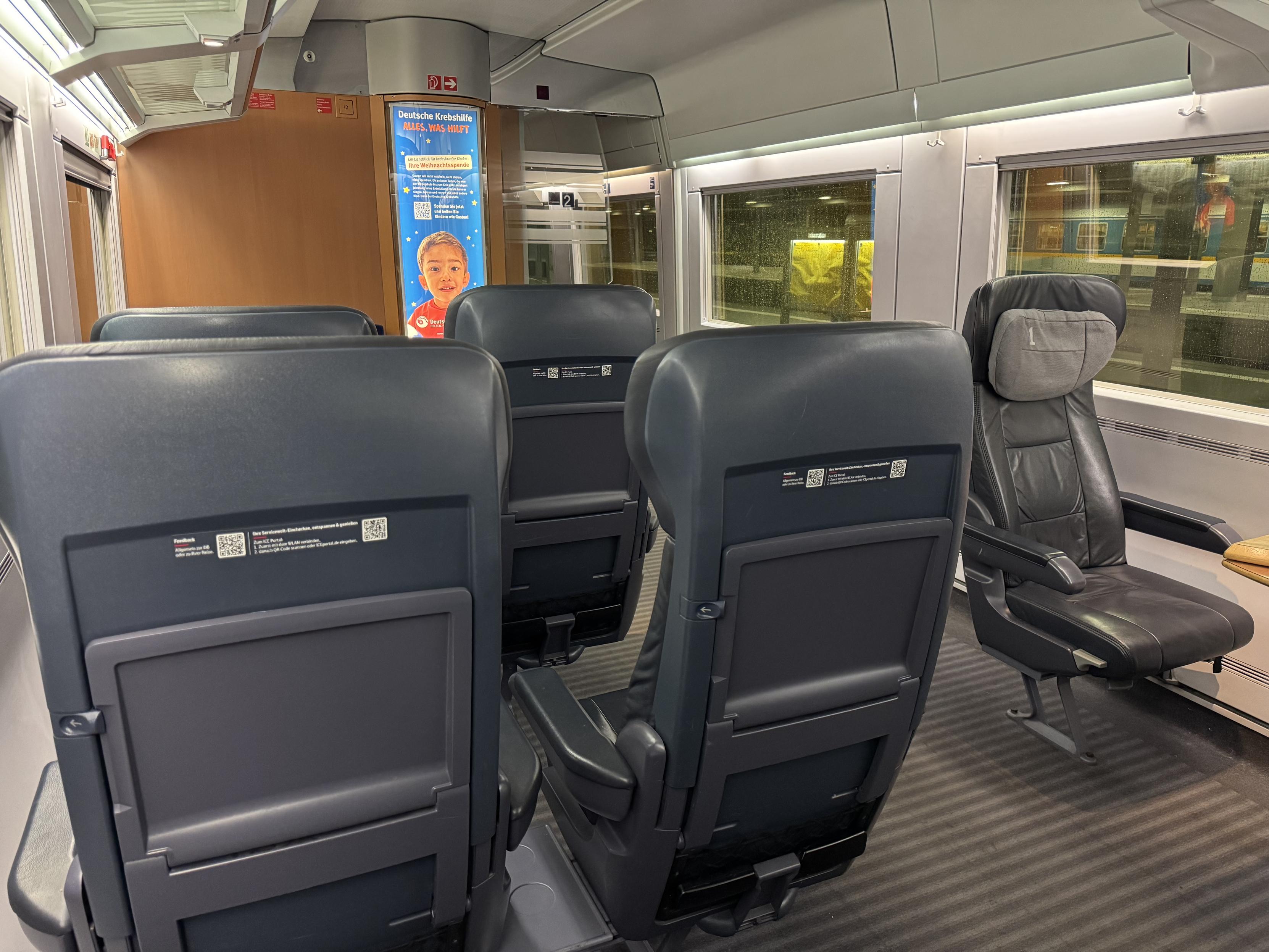 Sie sehen: Einen etwas schizophrenen Zweite-Klasse-Großraum im ICE 1 „Gießen“. Das Personal ist schon wieder genauso verwirrt wie ich. #ice500 #BahnBubble