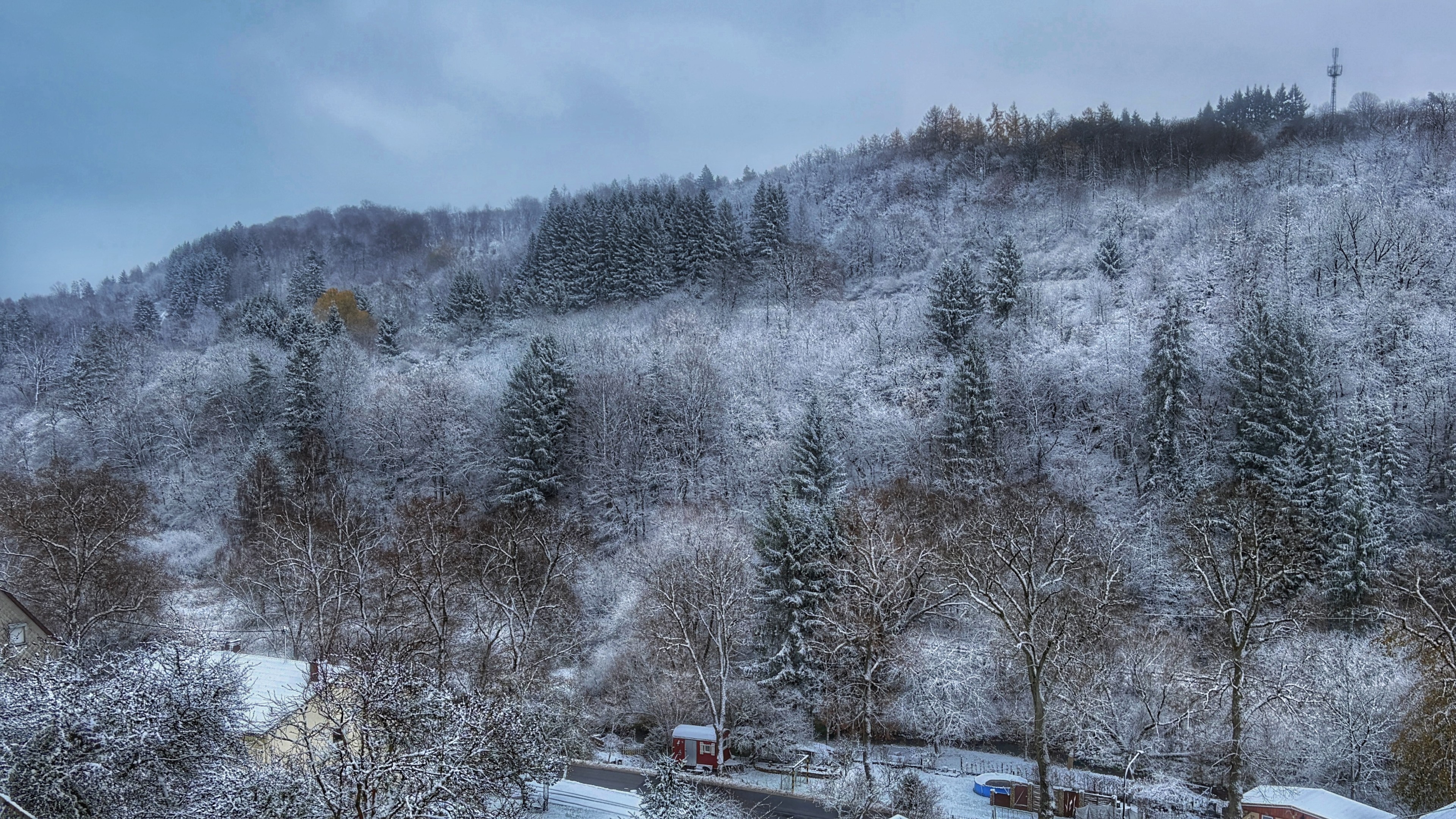 Damit überraschte uns die Natur 100 Meter von unserem zu Hause entfernt. Zu Beginn unseres heutigen Spaziergangs. Aus 40 Minuten notwendiger Bewegung durch November-graue Tristesse wurden 1½ Stunden himmelhochjauchzendes Naturerlebnis mit Schneevergnügen.