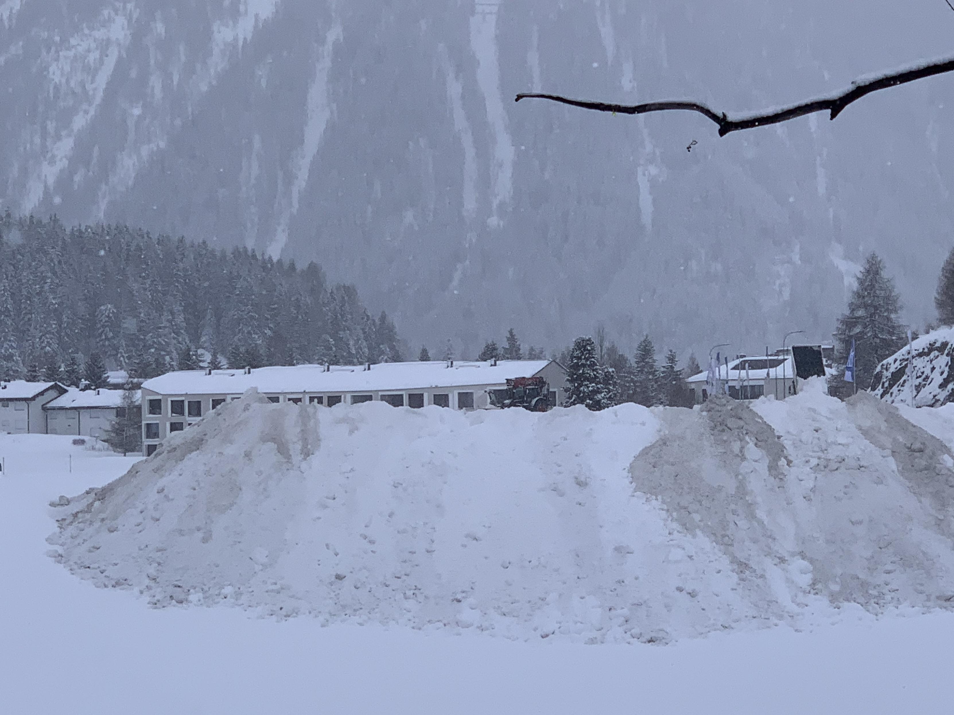 Hier wird der Schnee halt einfach in den fast leeren Davoser See gekippt. Ist ja auch nur eine besondere Form von Meteorwasser.