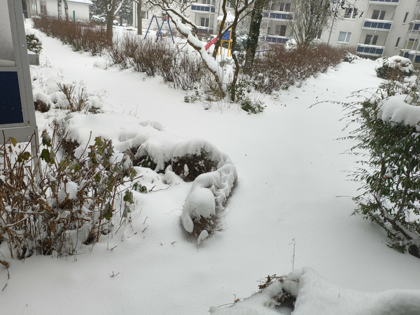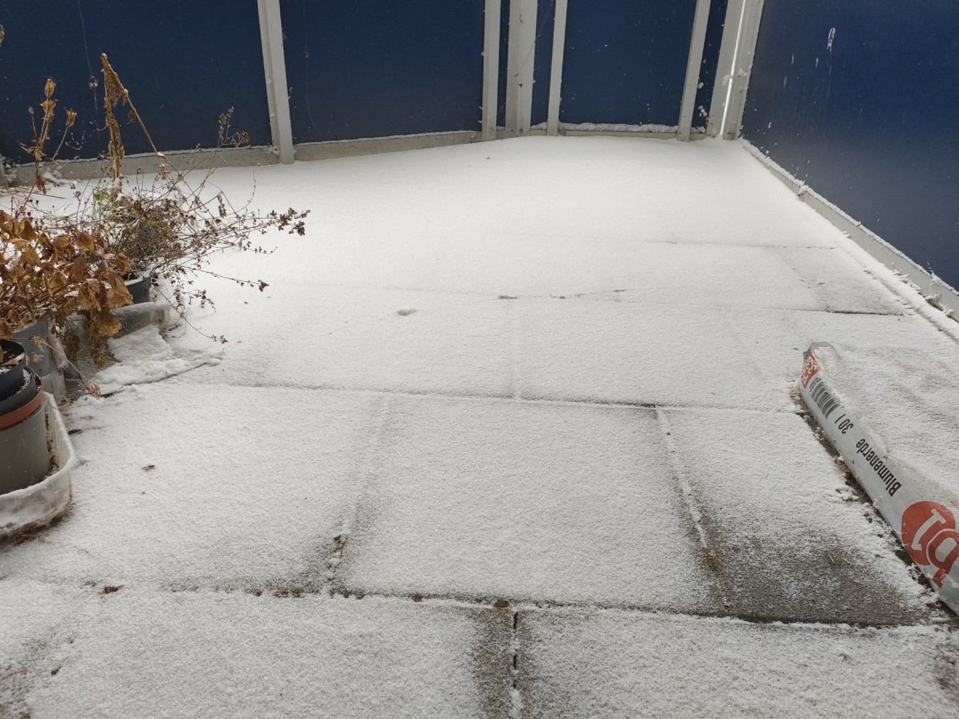 Ein paar winterliche Impressionen vom Balkon, die Fotos hatte ich vor wenigen Tagen hier gemacht.. der kleine Blumenkasten, in dem gerade Walderdbeeren überwintern, ist total zugeschneit..😄