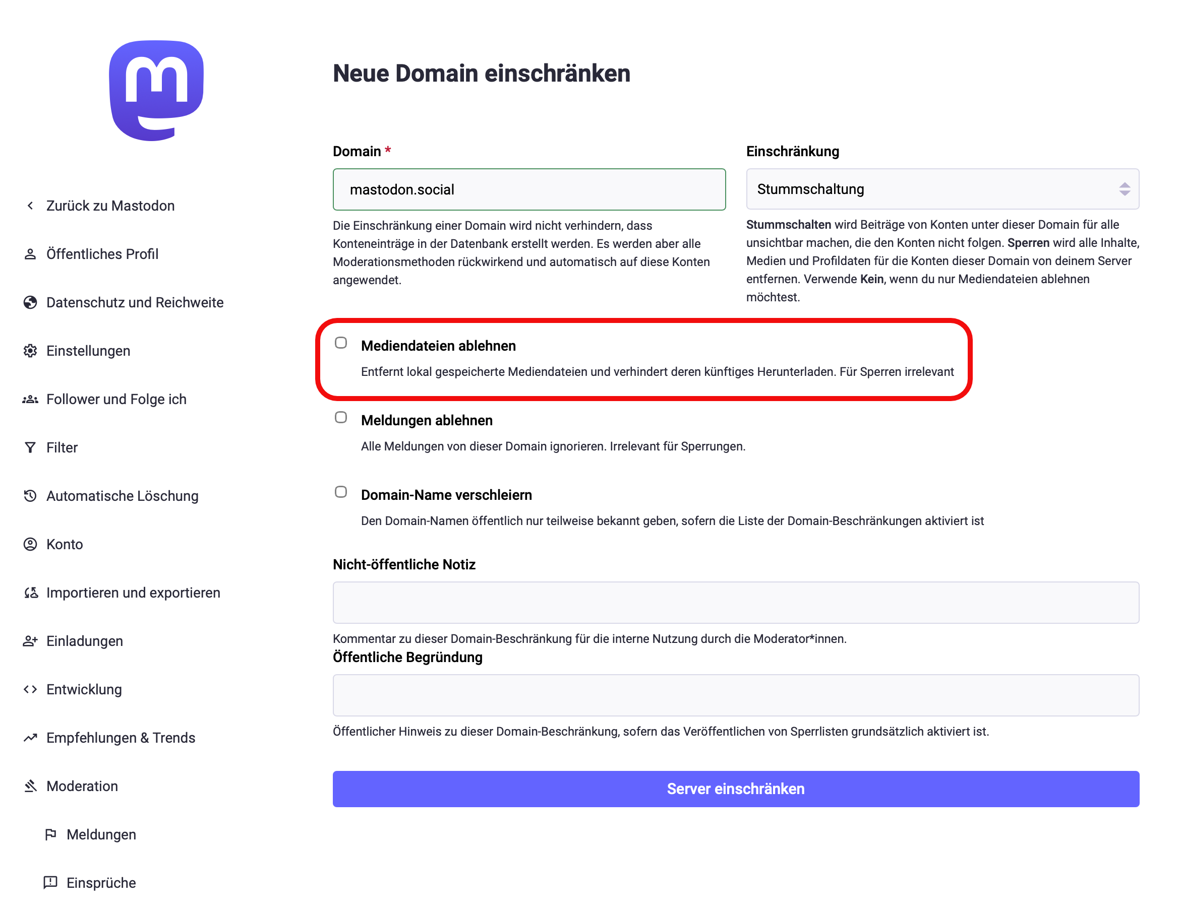in den Einstellungen der #Moderation - #Föderation der Punkt "Mediendateien ablehnen" für Auswirkungen? Bedeutet das, dass z.B. Bilder der #Instanz generell nicht mehr angezeigt werden oder werden die bei Bedarf im Browser nachgeladen?
