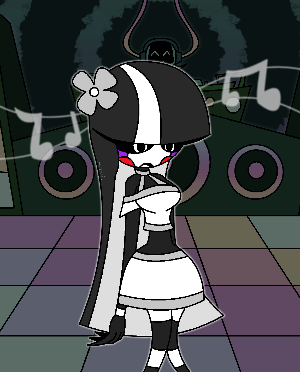 A little drawing of Mesmeric Charlotte enjoying some music at a club in a fancy little outfit. #charlotteemily #puppet #fnaf #mesmericmultiverse #agedup #gijinka #hypnosis #hypnoart #hypnoartist #hypnosiskink #hypnokink #hypnotized #cute #adorable #beautiful #krita #myart #fanart #digitalart