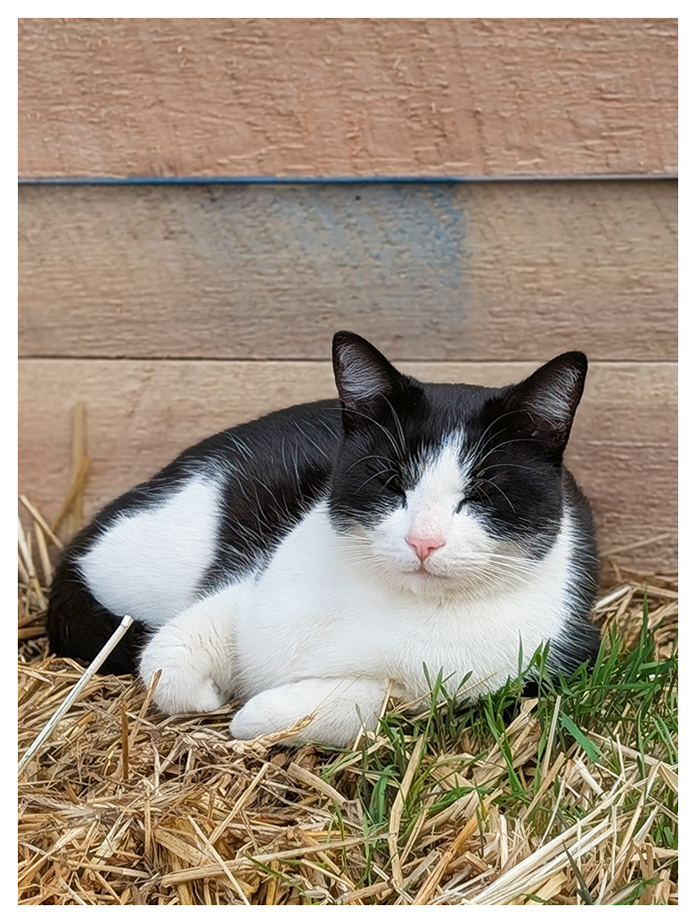 Barn Cat napping on a bale of hay at Darnell Farms today. ❤️