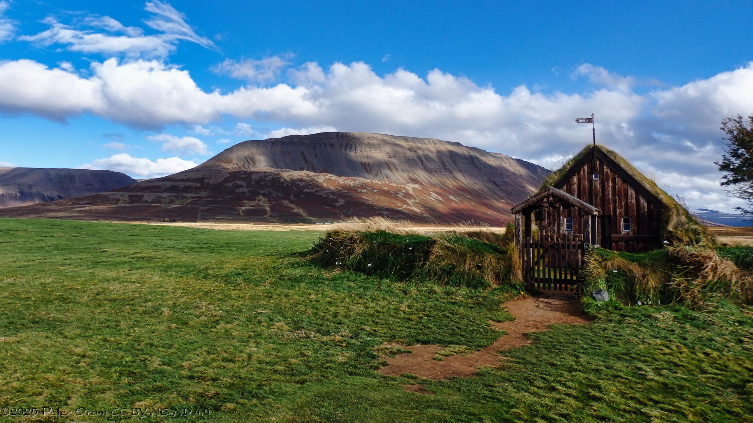 Grafarkirkja turf church is Iceland's oldest; parts of it date back to the 17th century and it's mentioned in Sturlunga Saga c. 1240. It has a circular turf wall around it.