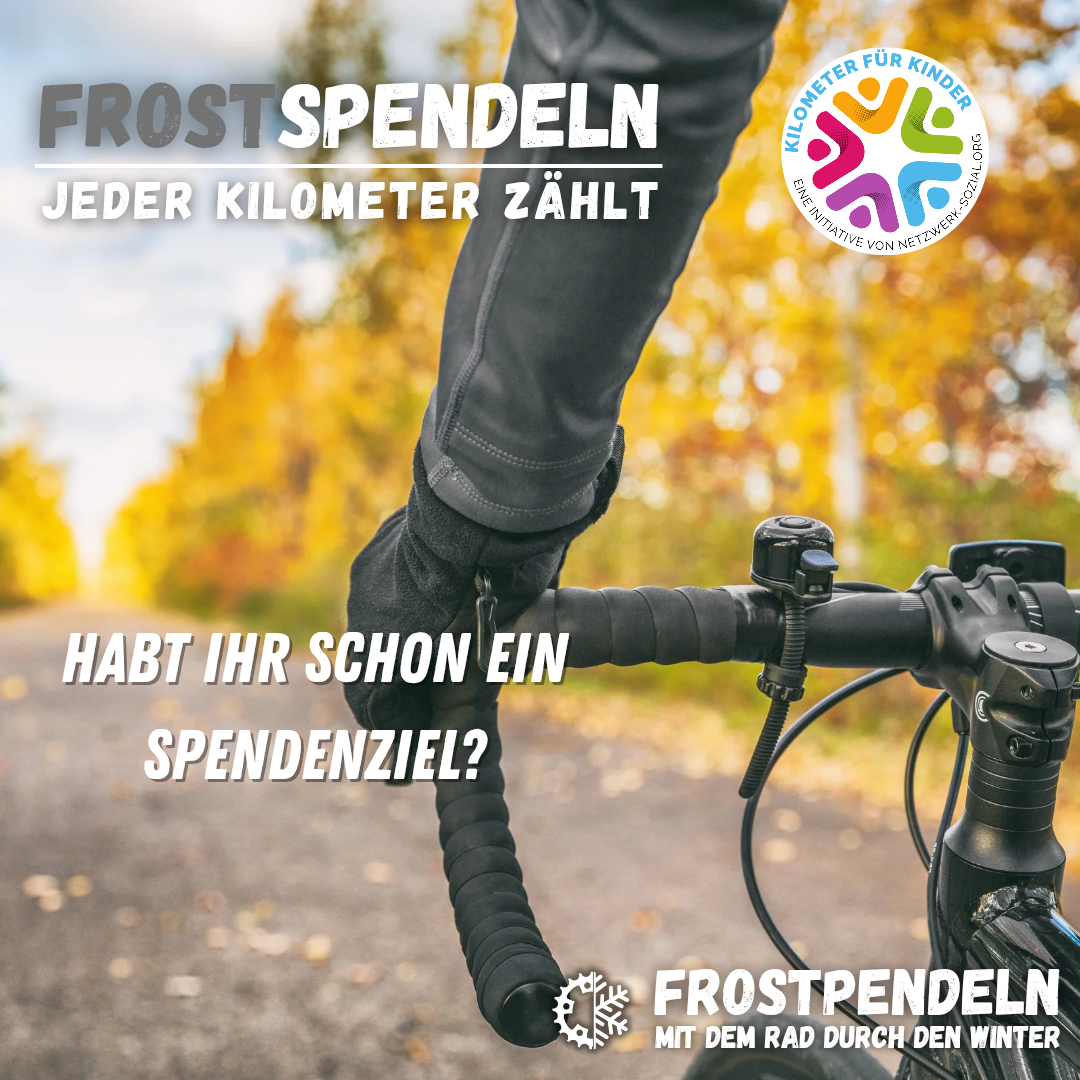 Dieses Jahr könnt ihr #frostSpendeln! Sucht euch ein Spendenziel aus und einen bestimmten Betrag, welchen ihr pro Kilometer am Ende der 4 Monate spenden möchtet. Eure Spendensumme wird anschließend automatisch in eurem #frostpendeln -Profil für euch errechnet!