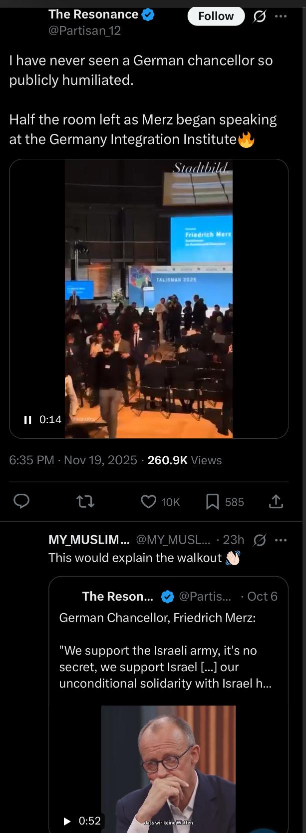 Half the room left as Merz began speaking at the Germany Integration Institute馃敟