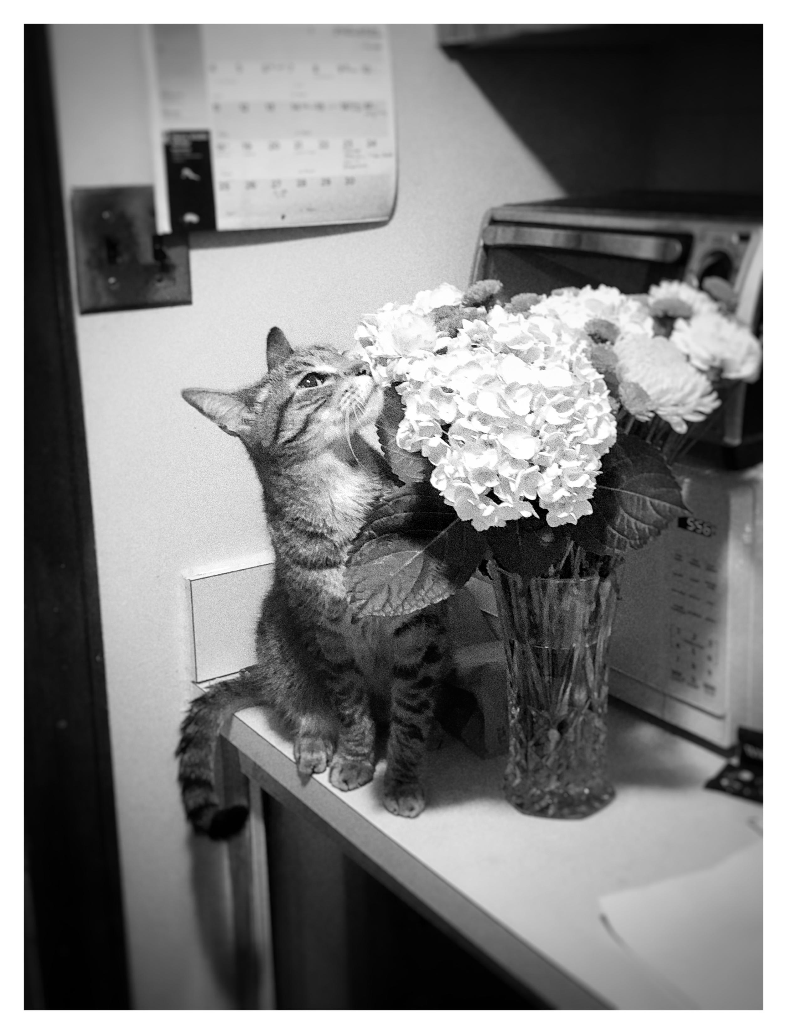 #MonochromeMonday #monochrome #blackandwhite #photography #cats #catsofmastodon #flowers