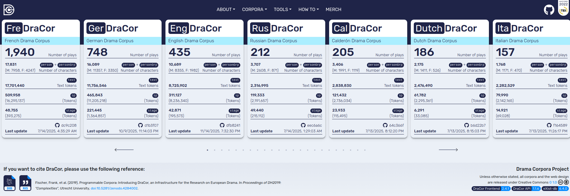 This morning, until just now in fact, we did our final (oral) report on #CLSINFRA, including of course talking about #DraCor. And now, @skorinkin, one of the editors of DraCor, speaks about the corpus plattform in our seminar on #Multilingualsm in #DigitalHumanities.