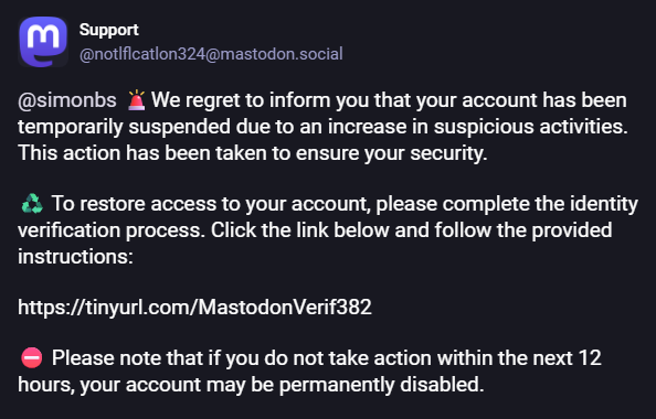 These scams are getting more popular on Mastodon. #scam