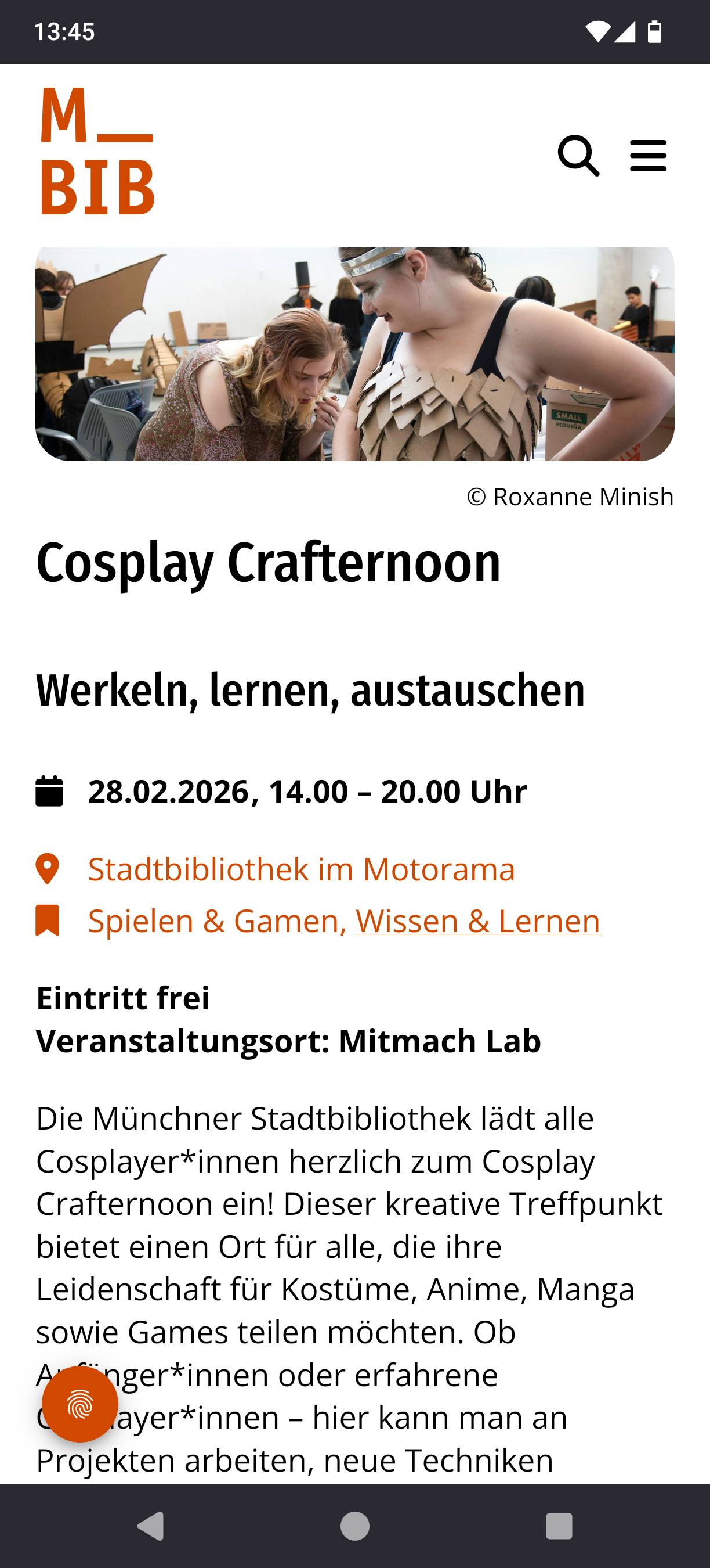 Nächsten Samstag (28.2.2026) ist wieder #Cosplay Crafternoon in der #Stadtbibliothek im Motorama in #München! Wer selber an einem Cosplay basteln möchte, ist herzlichst willkommen! 14-20 Uhr sind wir im Mitmach Lab! (ab 16 Jahren, keine Kinderbetreuung)