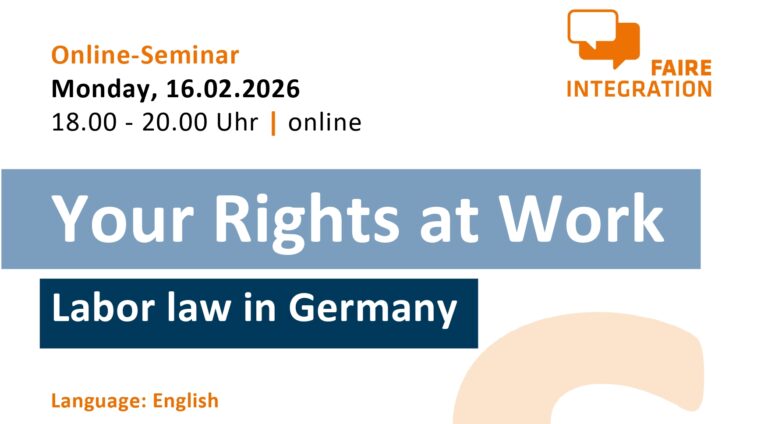 (FR Mecklenburg – Vorpommern) Online seminar: Your Rights at Work in Germany https://www.fluechtlingsrat-mv.de/online-seminar-your-rights-at-work-in-germany/10701/ #Aktuell