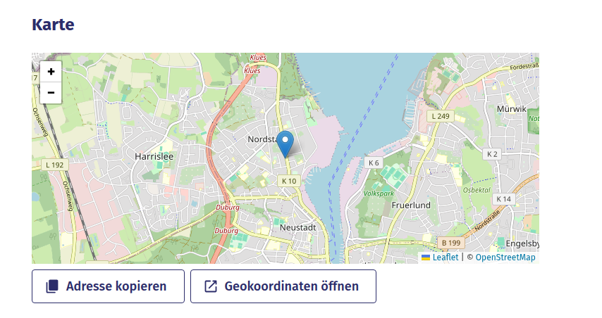 Bei der aktuellen Lösung gibt es einen Button, um die Adresse zu kopieren, und einen Link, um die Geokoordinaten zu öffnen. Letzteres ist cool, weil es nativ im Web funktioniert. Von der UX finde ich es aber immer nicht so schön, weil man dann in der App die Hausnummer nicht sieht, die eigentlich relevant ist.