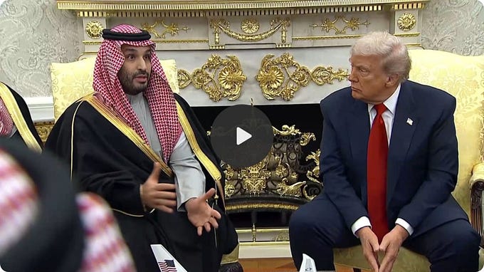 Der #Fossilismus verbindet die Öl-Regime der #USA & von #SaudiArabien. „Es ist eine Ehre, dein Freund zu sein, und es ist eine Ehre, dass du hier bist", sagte #Trump zu Mohammed #BinSalman. Die Frage einer Journalistin zum Fall des ermordeten saudischen Journalisten und Regierungskritikers Jamal #Khashoggi wies Trump barsch ab. "Things happen", sagte der US-Präsident – "Dinge passieren". Bin Salman habe nichts von der Sache gewusst...“ https://www.zeit.de/politik/ausland/2025-11/donald-trump-mohammed-bin-salman-washington-menschenrechte-khashoggi