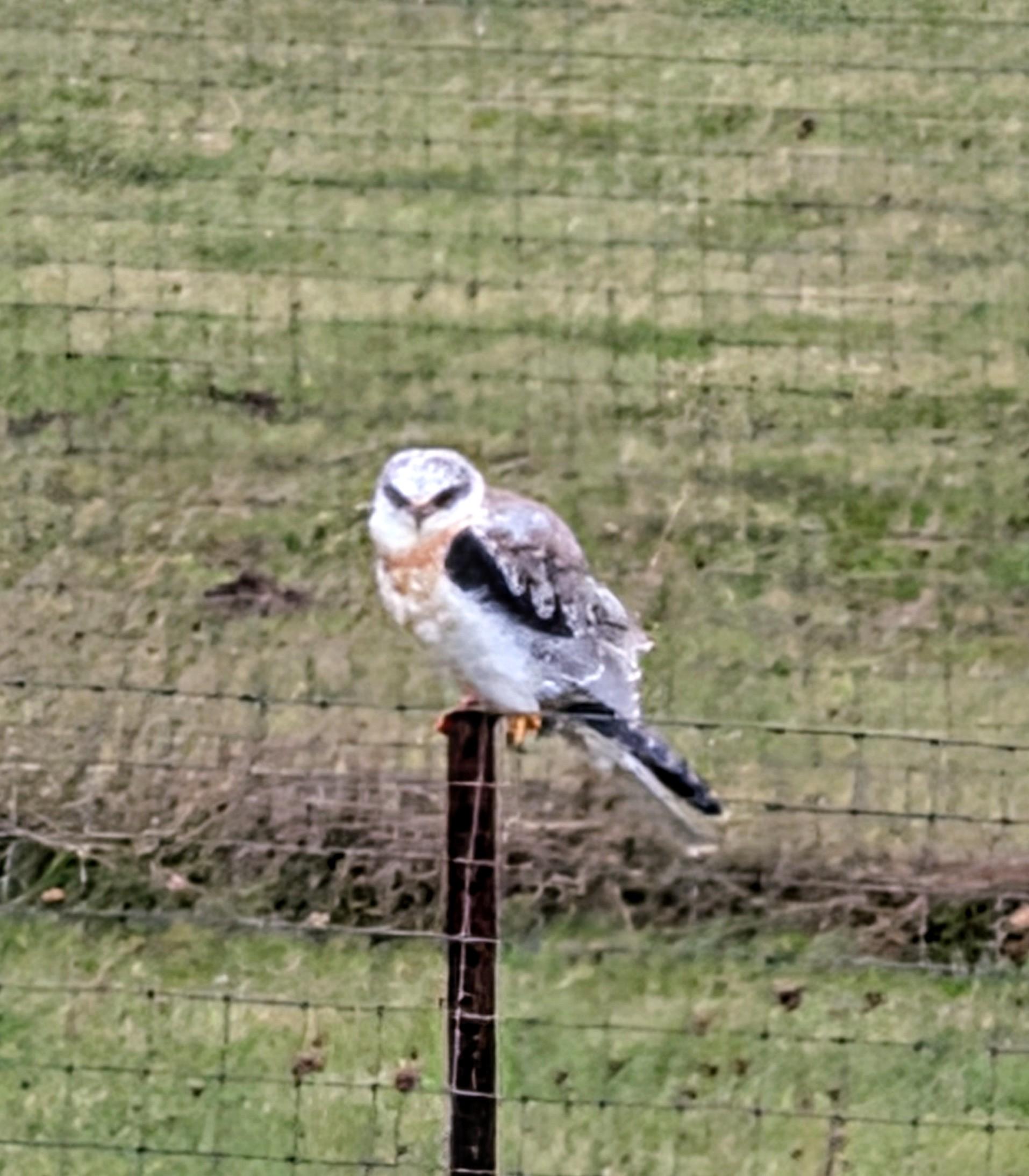Summer sat quietly so I could take a photo of our white tail kite visitor.