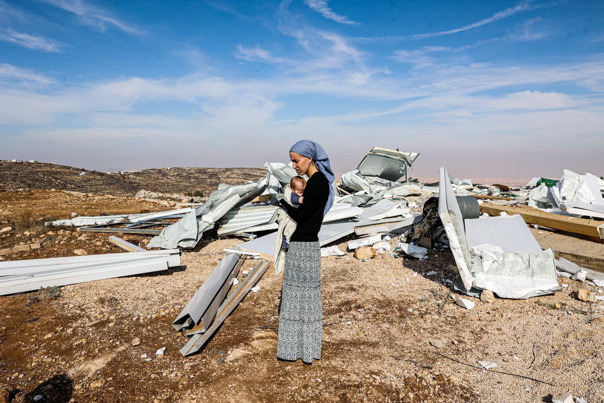 Achinoam holds her baby after her house was dismantled as Tzur Misgavi, an unauthorized Israeli settler outpost, by Israeli security forces, in the Israeli-occupied West Bank, November 17. REUTERS/Naama Stern
