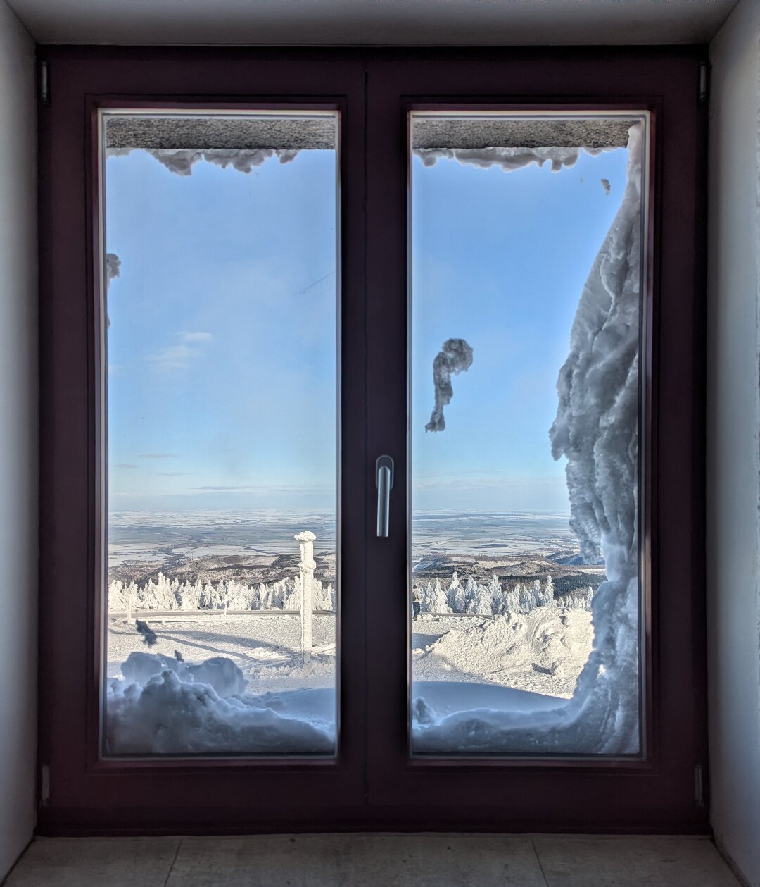 The view from the #Brockenwirt caf茅 at the summit of the #Brocken, captured on Monday for #FensterFreitag. 鉂勶笍