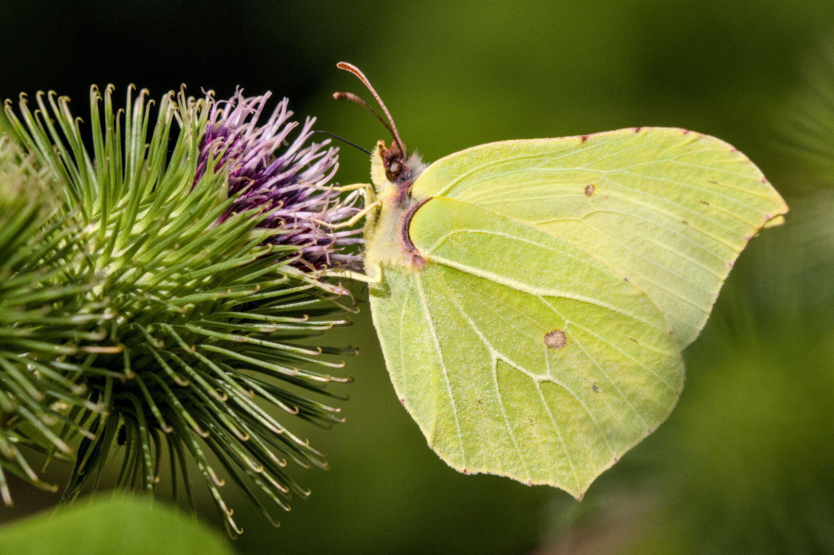 Die Große #Klette (#Arctium lappa) zieht #Schmetterlinge an wie hier den #Zitronenfalter (#Gonepteryx rhamni).