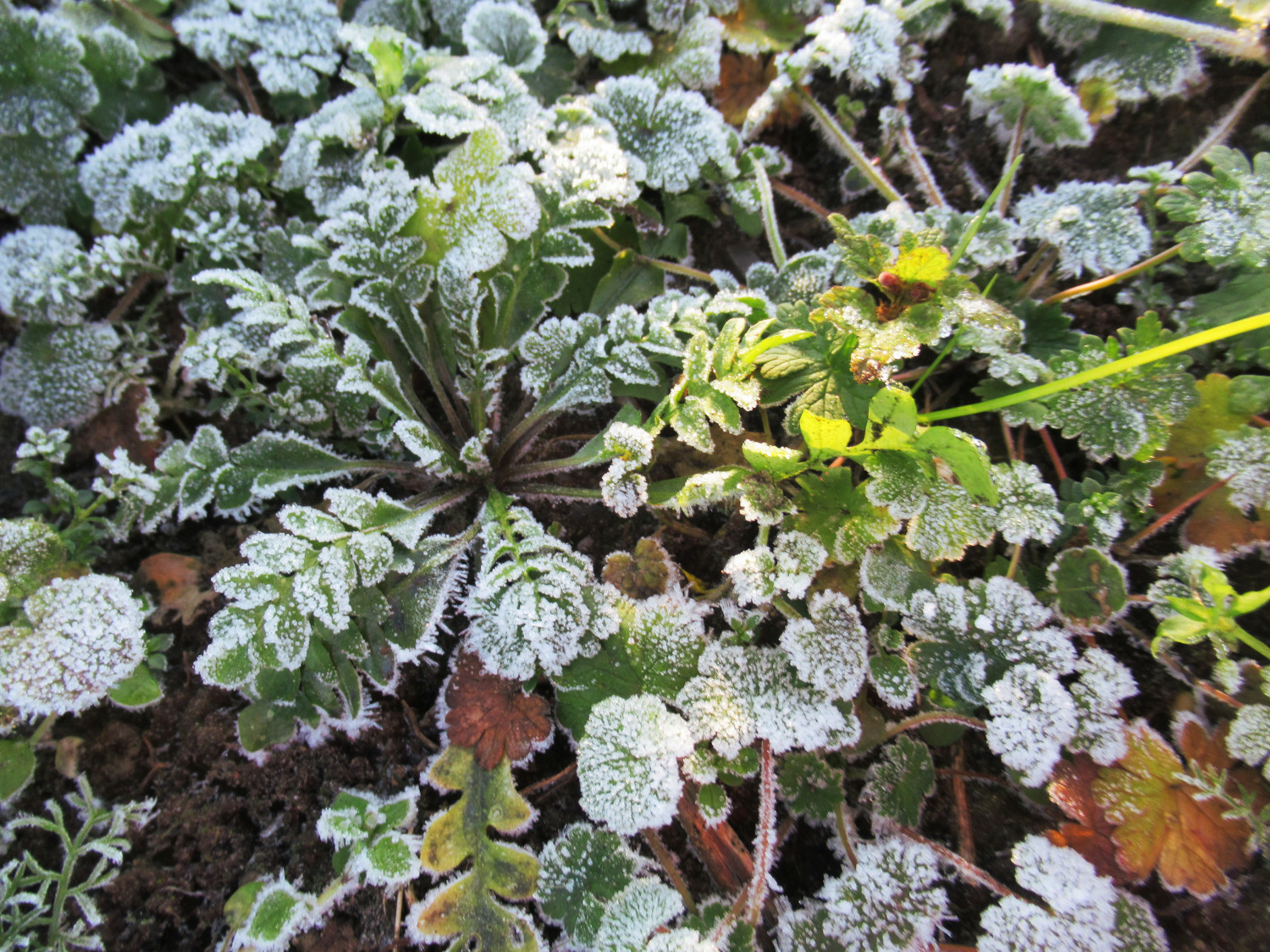 Also, da wäre mir Schnee ganz eindeutig lieber. Immerhin, der Garten sieht aus, als hätte jemand Puderzucker drüber gestreut.