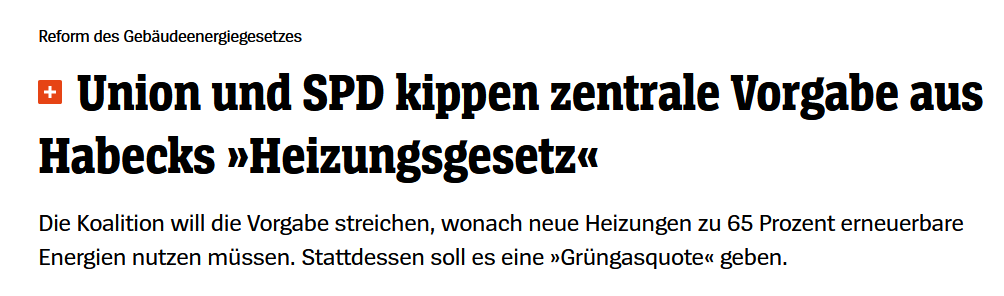 Ah, cool, die Union macht weiterhin Politik gegen die thermodynamischen Gesetze. Nun gut, was soll's. Das mit der Klimakatastrophe haben wir ja eh längst aufgegeben.