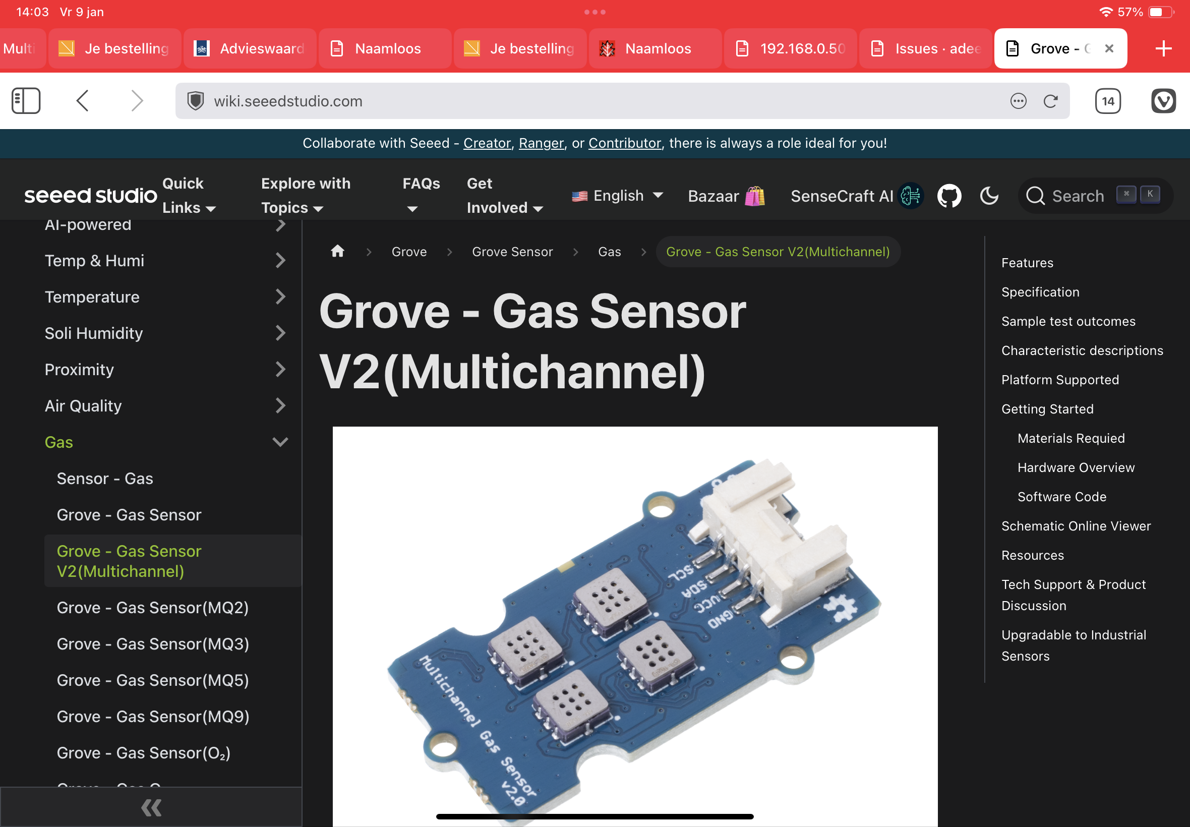 First bought a #seeed gas sensor but it turns out it's not really suited to measure co in the range of 1-15 ppm.