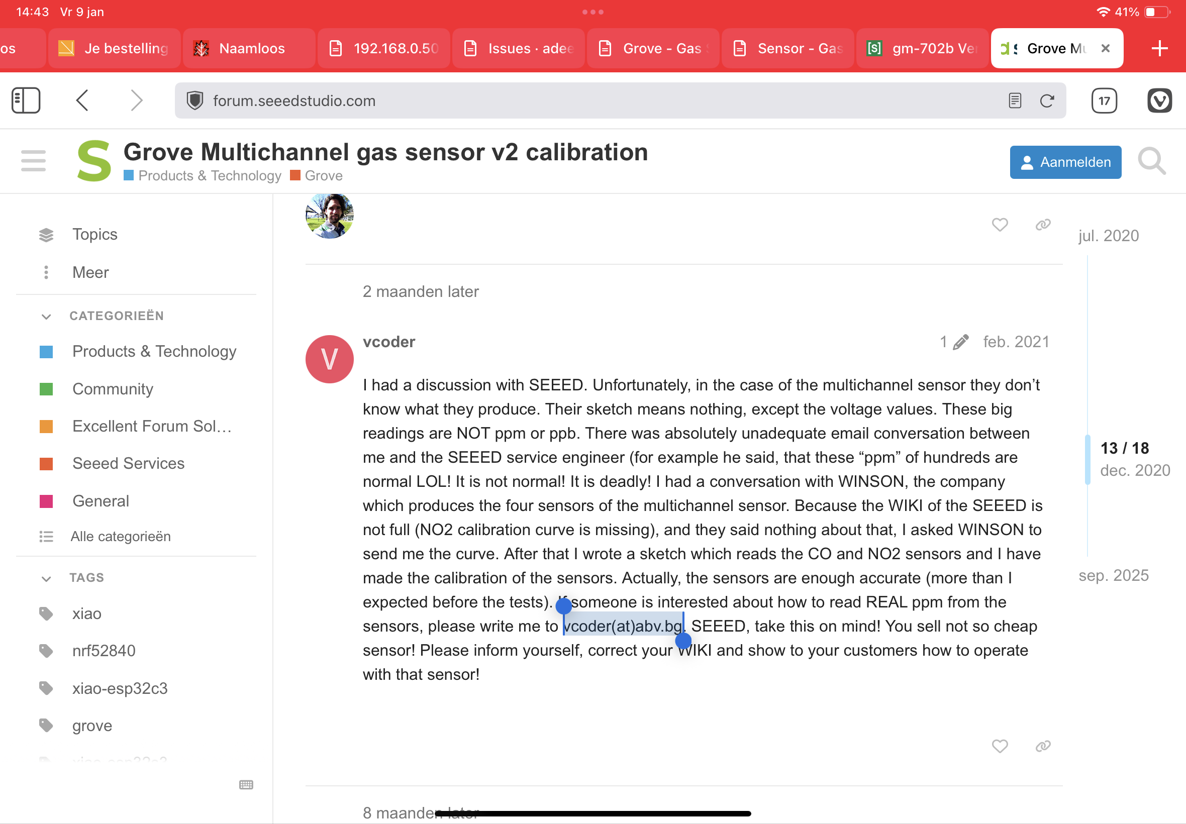 OK, #CO #airquality update and question. looking for an arduino or esp32 script to run an me2-co sensor