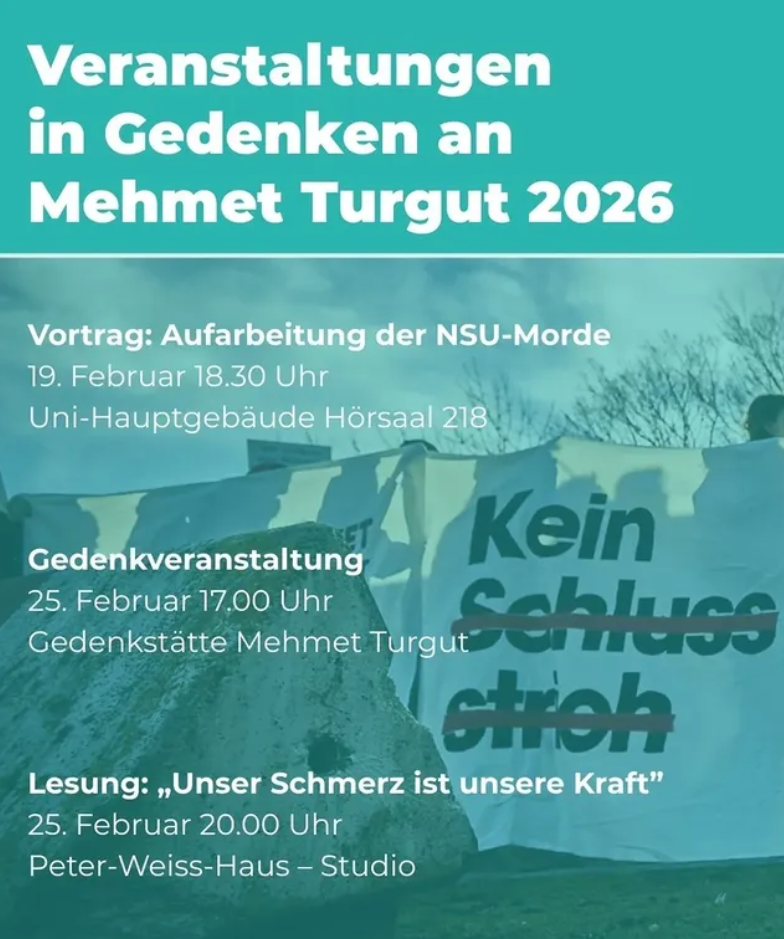 Kommt heute um 17 Uhr zur Gedenkkundgebung für Mehmet Turgut! Sie findet am Gedenkort für Mehmet Turgut am Neudierkower Weg statt.