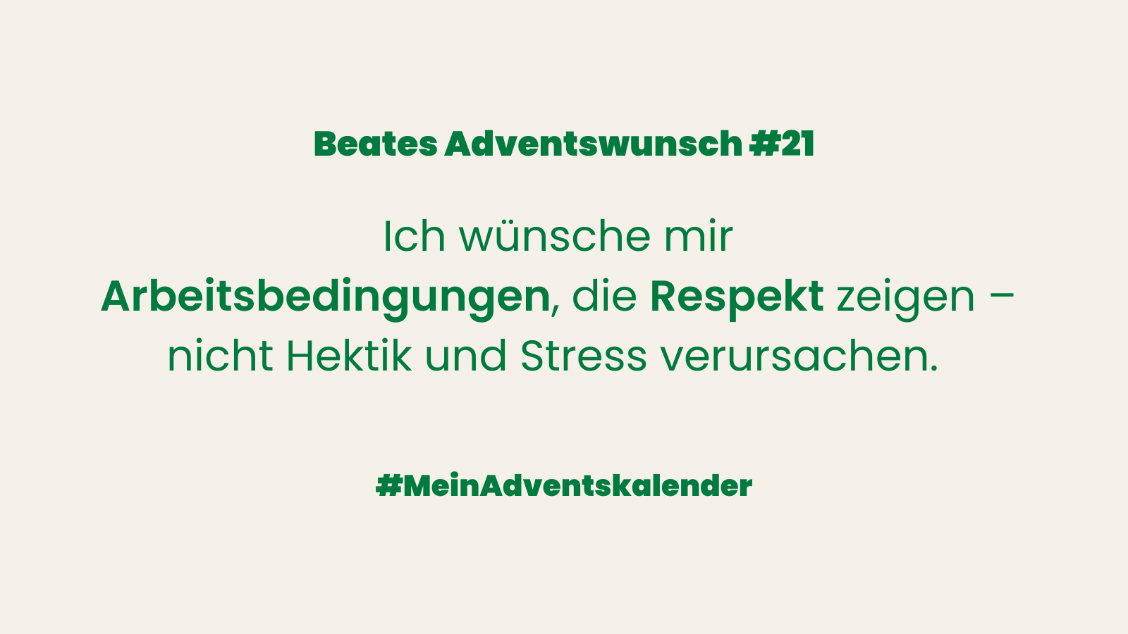 Ich wünsche mir Arbeitsbedingungen, die Respekt zeigen – nicht Hektik und Stress verursachen.