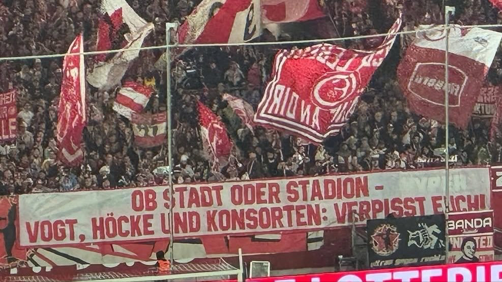 Garath ist noch rund um den Veranstaltungsort der AfD voller Menschen, auf dem Bahnsteig die ersten Abreisewilligen. Wir verabschieden uns mit einem Schwenk über eine Bannerkette.
