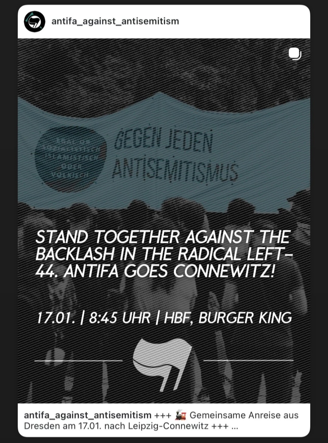 Immer mehr Gruppen in der Region positionieren sich zu #le1701 Hier die Antifa Elbflorenz aus Dresden auf Insta: