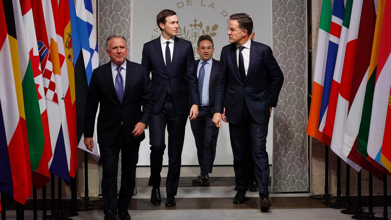 (Front row from L) Cyprus's Minister of Energy, Commerce and Industry Michael Damaianos, NATO Secretary General Mark Rutte, Canada's Prime Minister Mark Carney, European Council President Antonio Costa, Poland's Prime Minister Donald Tusk, Slovenia's Prime Minister Robert Golob, Ukraine's President Volodymyr Zelensky, France's President Emmanuel Macron, Britain's Prime Minister Keir Starmer, Italy's Prime Minister Giorgia Meloni, European Commission President Ursula Von der Leyen,US Special Envoy Steve Witkoff, US President's son-in-law and businessman Jared Kushner and US Ambassador to France Charles Kushner (back row) Croatia's Prime Minister Andrej Plenkovic, Albania's Prime Minister Edi Rama, Spain's Prime Minister Pedro Sanchez, Sweden's Prime Minister Ulf Kristersson, Finland's President Alexander Stubb, Romania's President Nicusor Dan, Denmark's Prime Minister Mette Frederiksen and Belgium's Prime Minister Bart De Wever