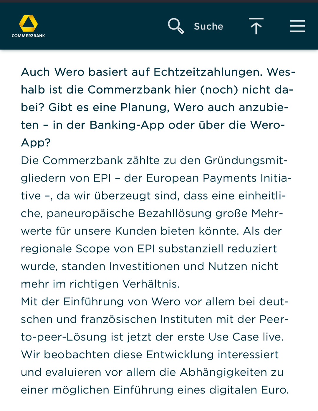 Wieso ist die Commerzbank nicht beim Bezahlsystem Wero dabei?