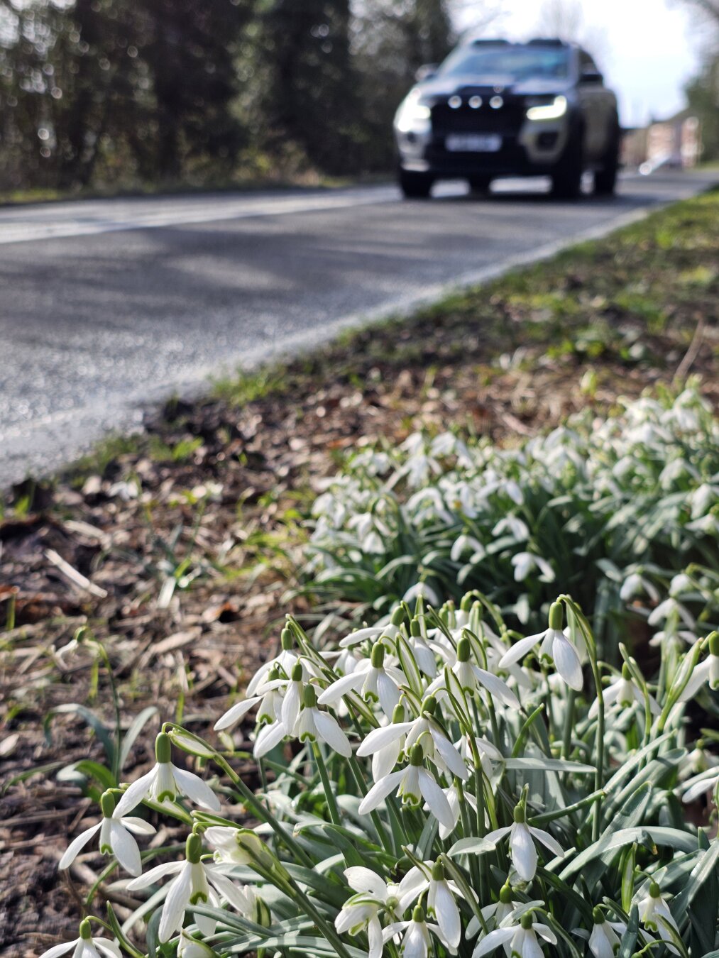 Roadside Snowdrops. Good name for a rock group? #snowdrops #roadsideflowers #bloomscrolling #flowersofpixelfed