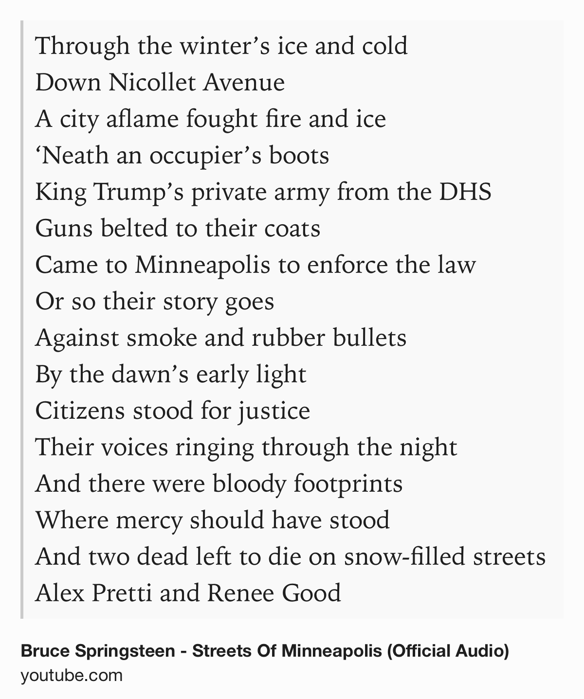 Bruce Springsteen hat sich heute sehr deutlich zu den Ereignissen in Minneapolis zu Wort gemeldet, und was liegt ihm da näher als ein Song?