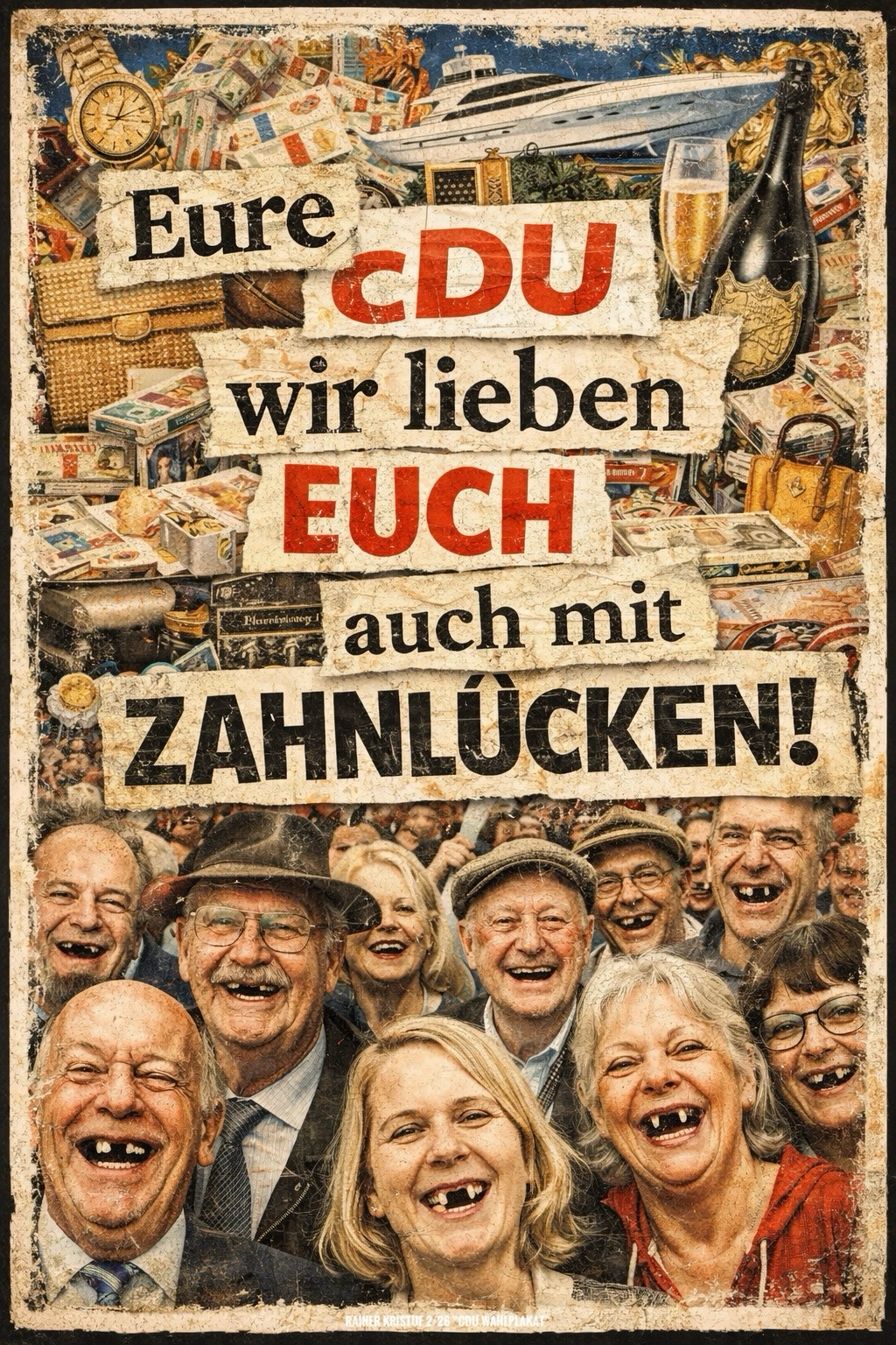 Zahnbehandlungskosten aus der gesetzlichen Krankenversicherung zu streichen ist orchestrierte Armenbekämpfung der #CDU. Die können sich keine Zusatzversicherung leisten, werden als Kunden gar nicht erst angenommen und müssten ohnehin Teile der Leistungen selbst bezahlen. Abgesehen von den Kosten für die Folgeerkrankungen schlechter Dentalgesundheit sinkt dadurch die Lebenserwartung. Während Bonzen sich kostenlos die Zähne machen lassen, weil die Mittelschicht keine Termine mehr kriegt