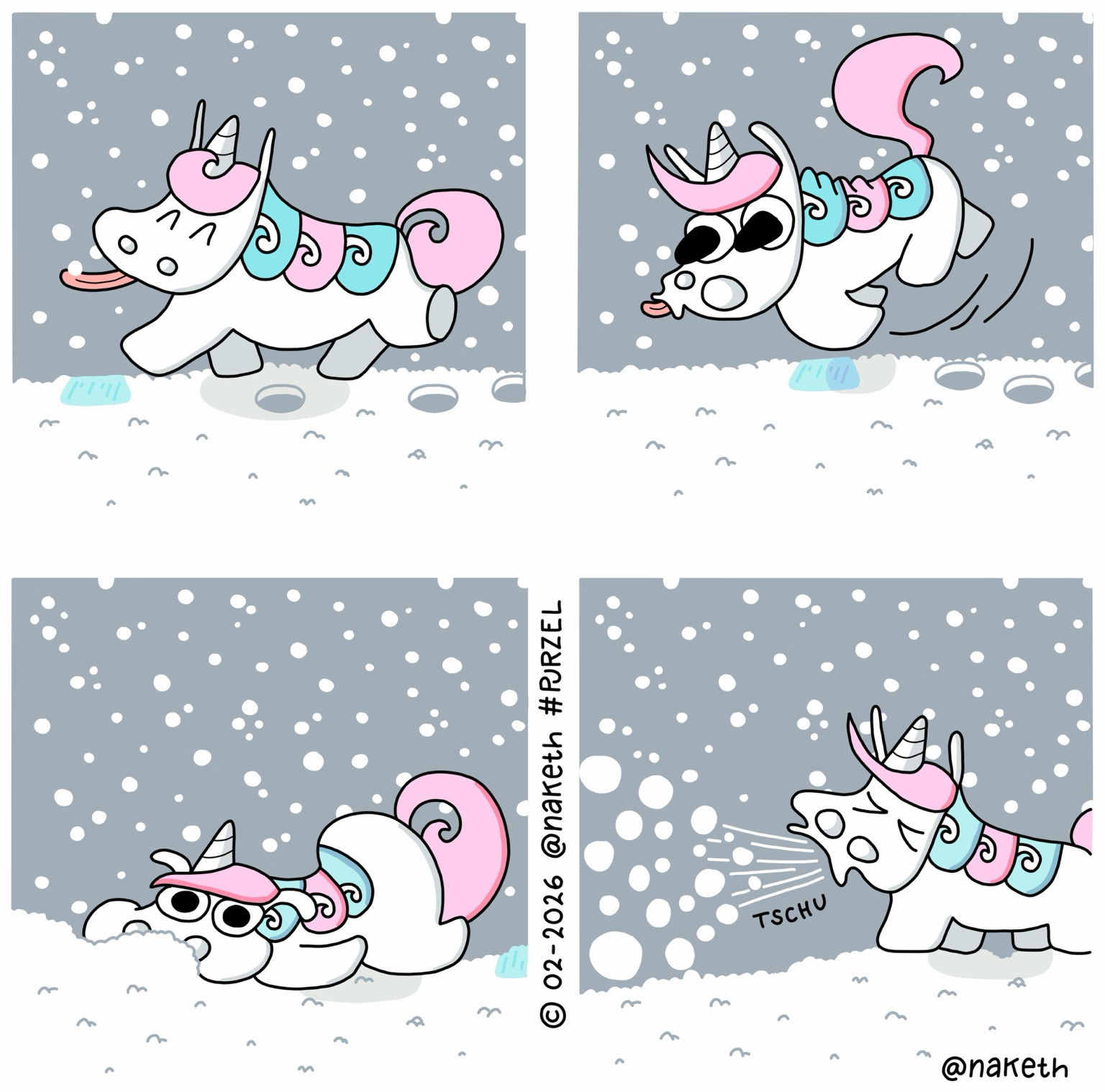 Bei uns hats gestern nochmals so richtig geschneit! So richtig dicke Flocken den ganzen Tag. Daher gibt es heute einen entsprechenden #Purzel #Comic, auch wenn der Schnee heute wieder weg ist. Der #Webcomic zeigt auch, was ich so vom #Winter halte 馃槣 #Fr眉hling, ich sehn mich so nach dir! N盲chste Woche wirds aber warm 馃槉