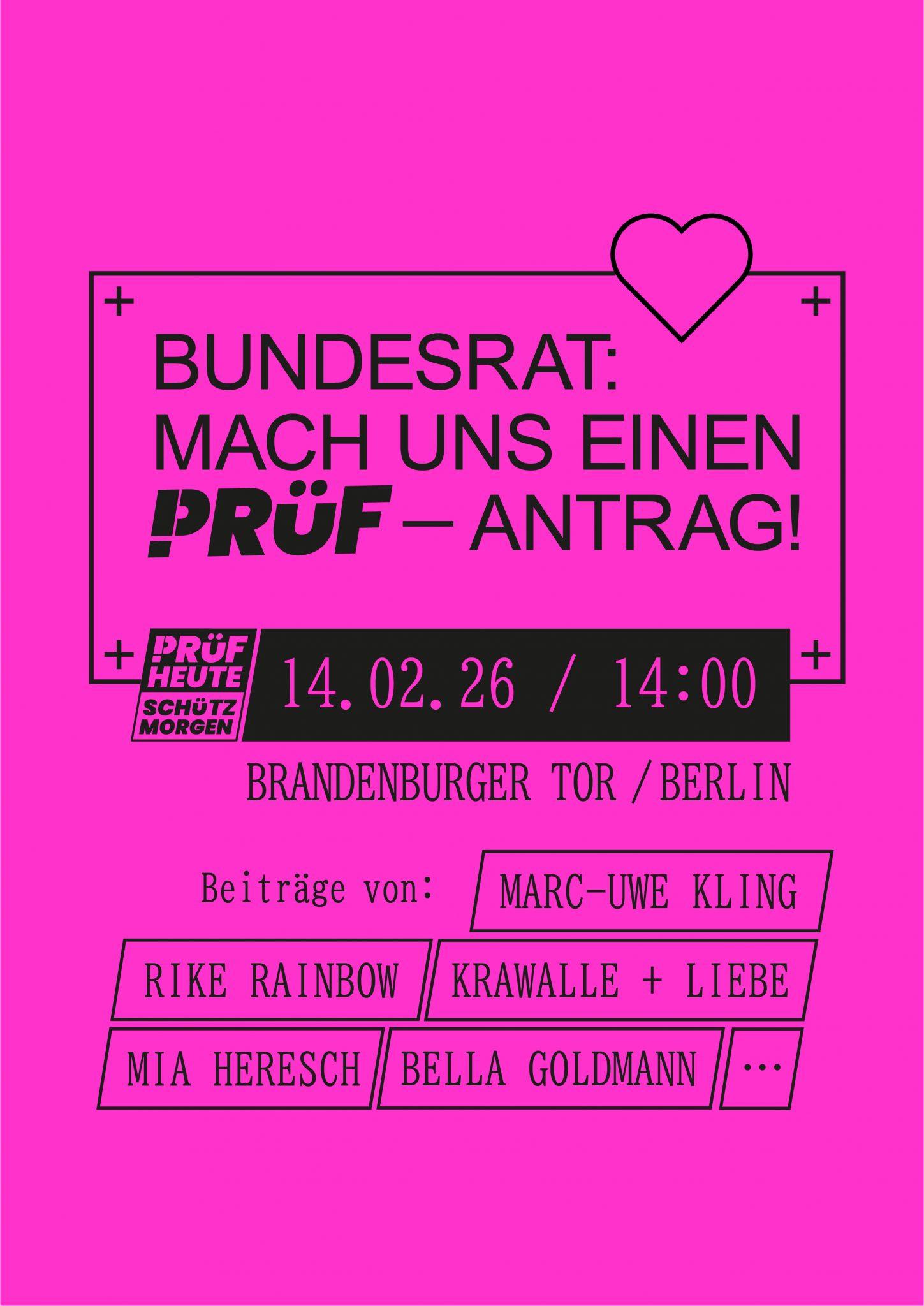 Samstag, 14.02.2026 um 14:00 Uhr PRÜF-Demo auch in deiner Stadt!?! ➡️ Berlin (Brandenburger Tor), Düsseldorf (Bilker Arcaden), Hamburg (Rathausmarkt), München (15:00 Uhr Geschwister-Scholl-Platz) und Stuttgart (12 Uhr Schlossplatz).