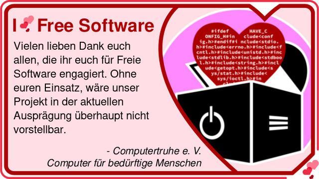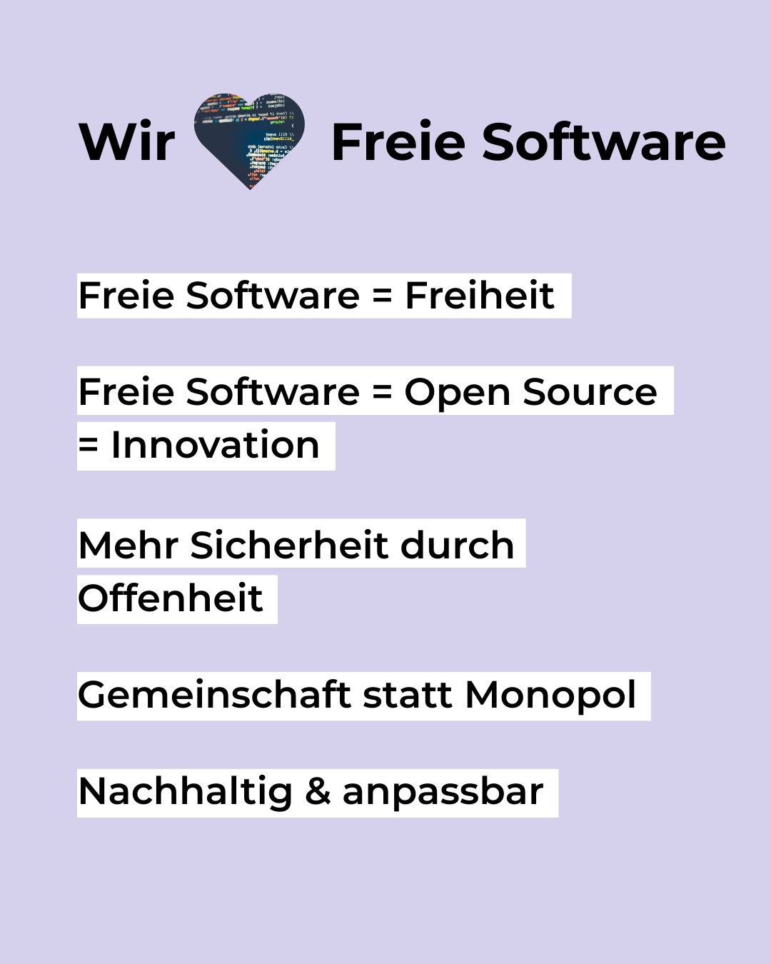 Ich liebe freie Software. Sie ermöglicht mir ein sinnvolles, nachhaltiges Arbeiten mit geprüfter, vertrauenswürdiger Software. Ohne Werbung, ohne KI-Slop und ohne Daten-Kraken.