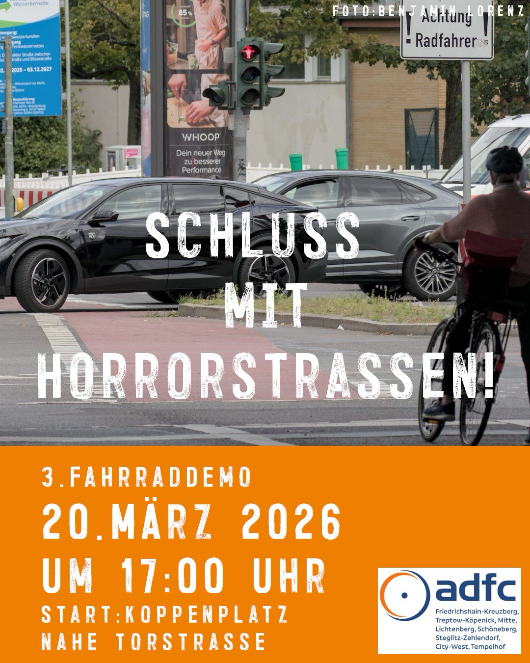 Die Demo #Horrorstraßen ist eine Initiative von Stadtteilgruppen des @ADFC_Berlin